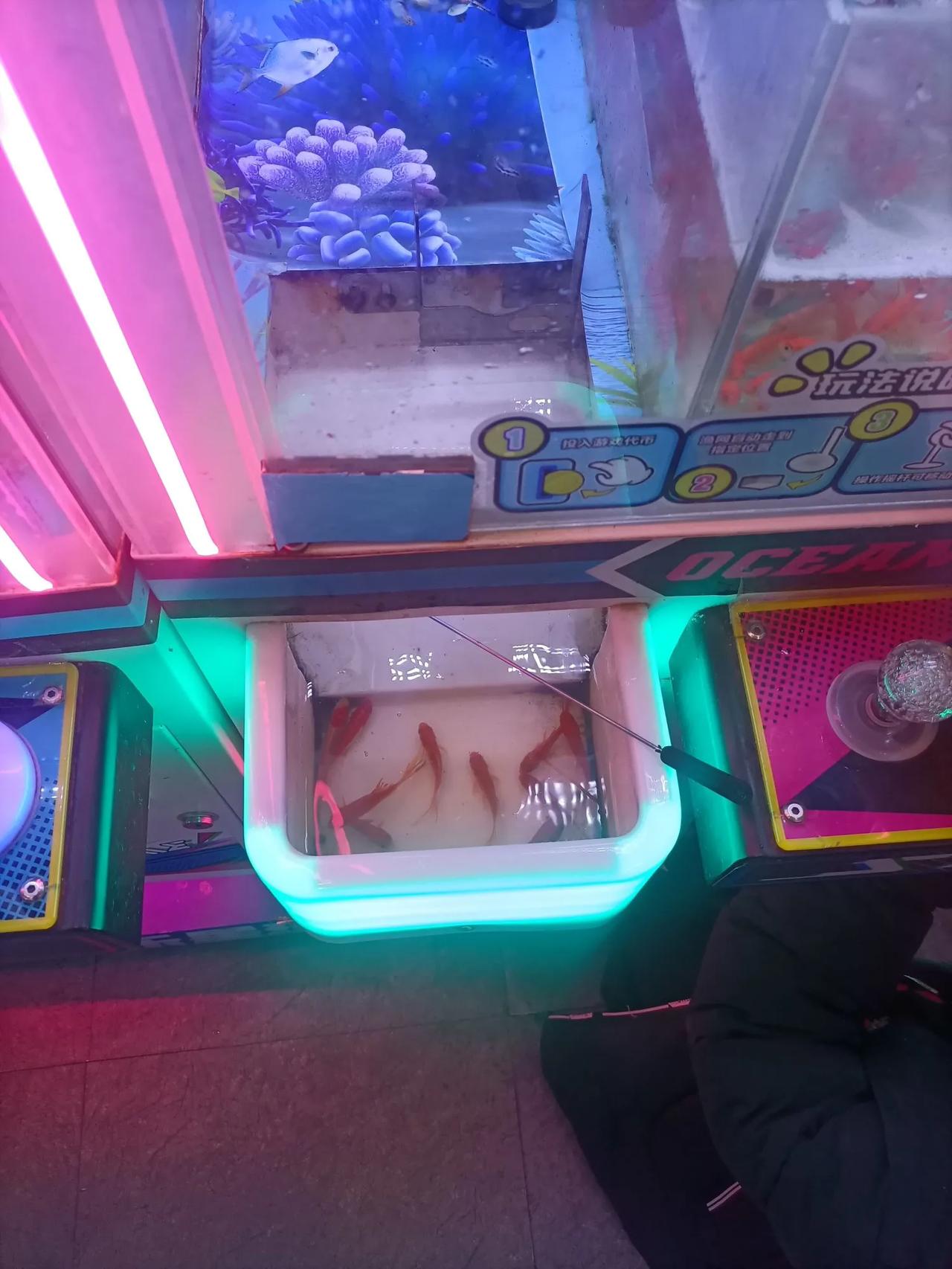 升级了,抓娃娃现在升级为抓小鱼。今天在万达看到一位小女孩在玩一台抓小鱼机,我看了她抓三次,有两次都抓中,成功率比抓娃娃还高。图中的蓝子里面的鱼都是她抓的。