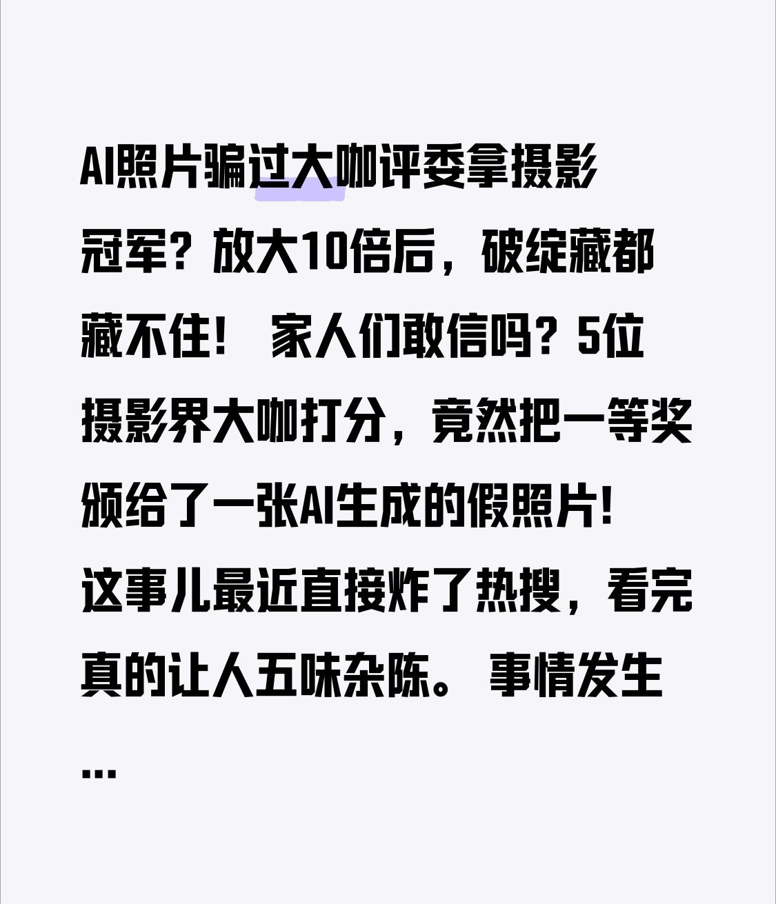 AI照片骗过大咖评委拿摄影冠军?放大10倍后,破绽藏都藏不住! 家人们敢信吗