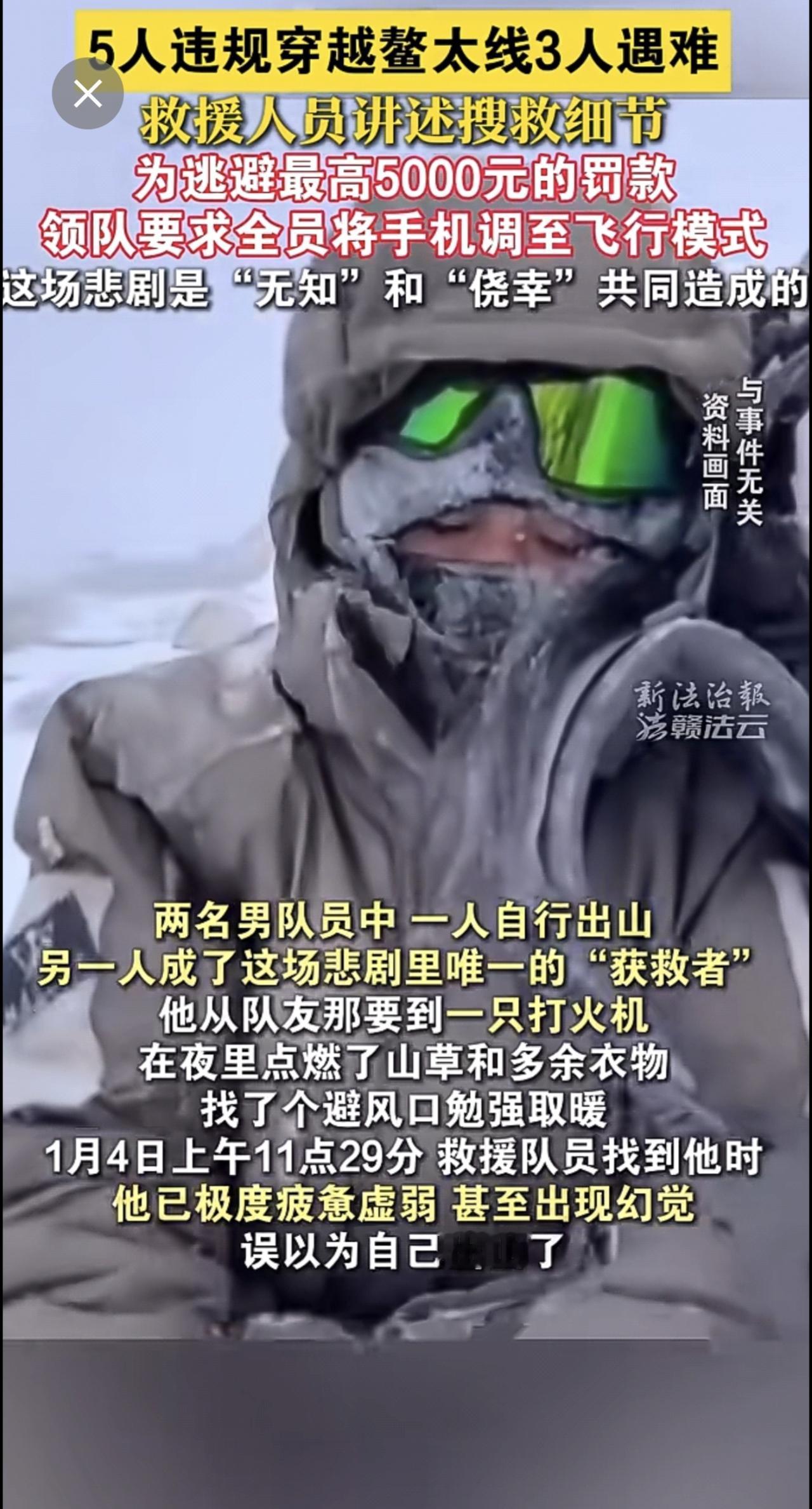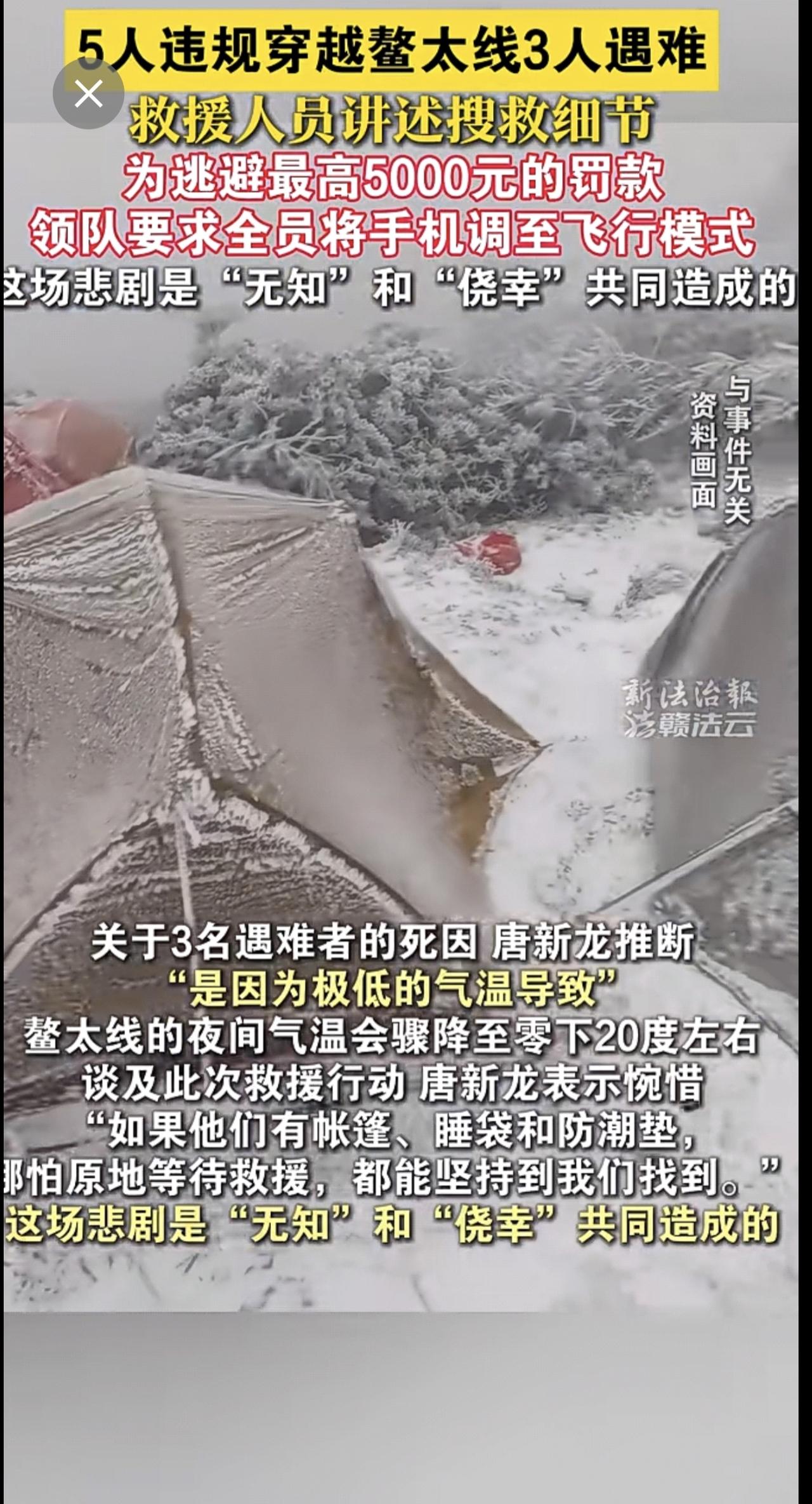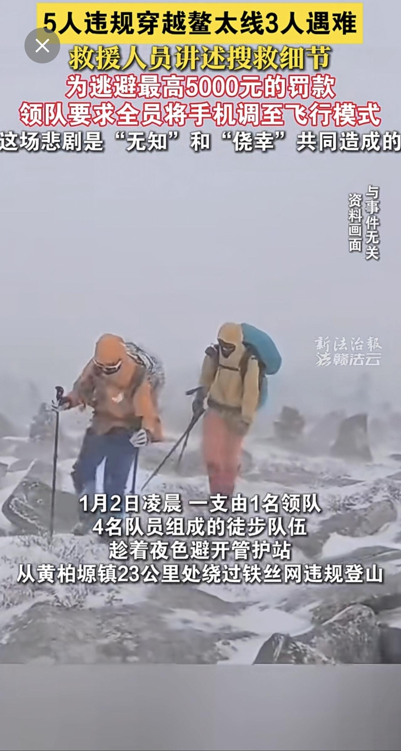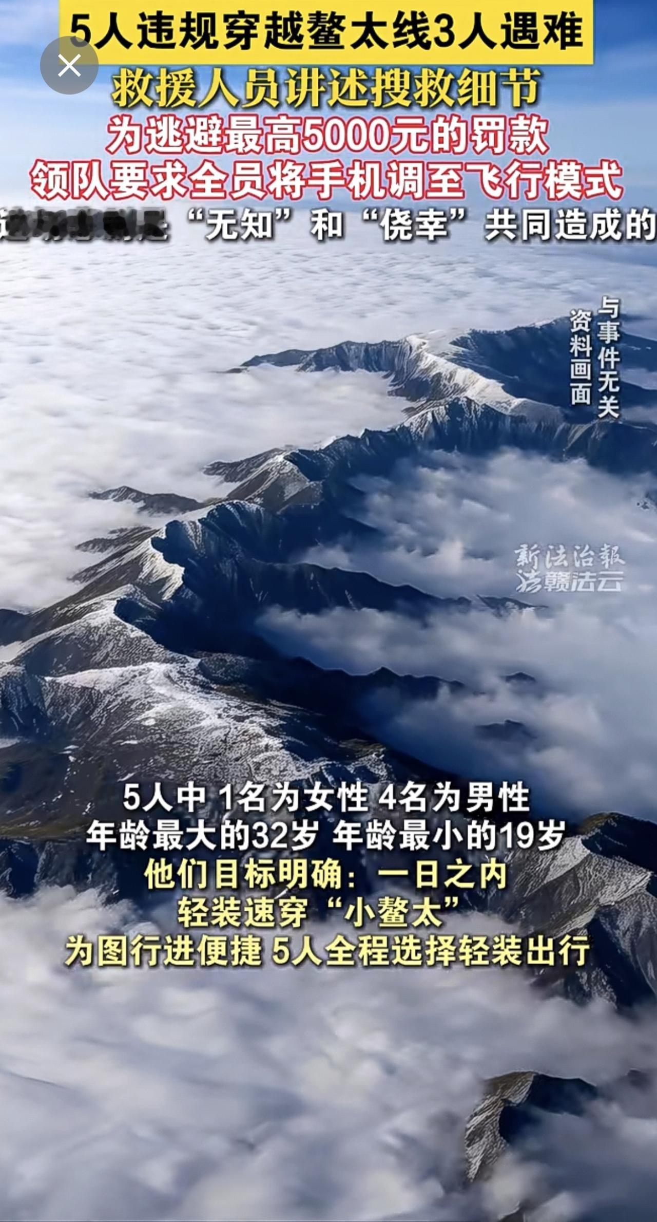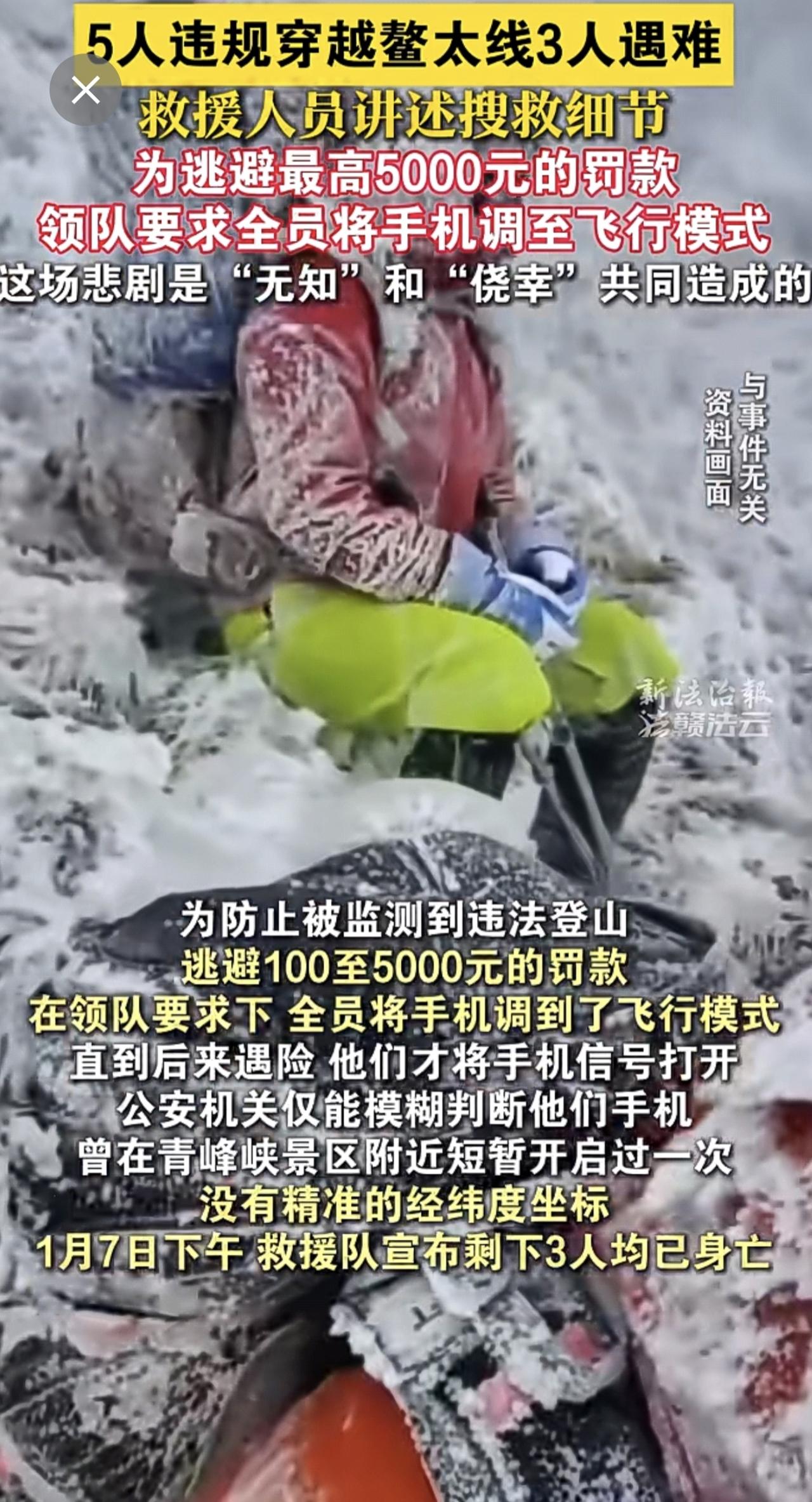 5人违规穿越鳌太线3人遇难,救援人员讲述搜救细节:为逃避罚款,领队要求将手机调至