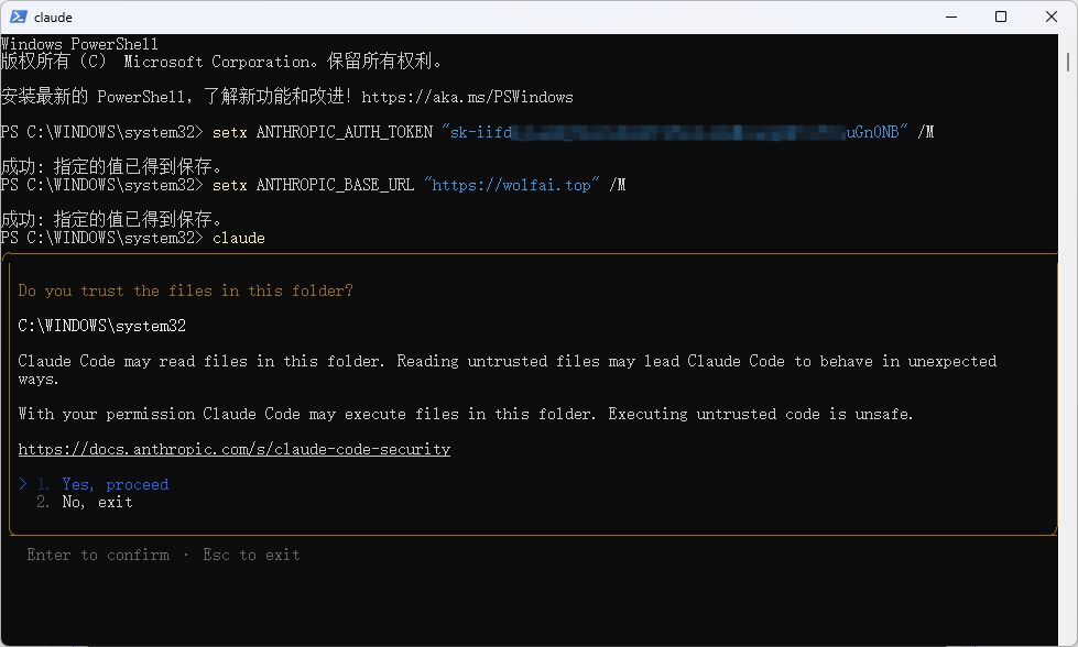 setx ANTHROPIC_BASE_URL "https://wolfai.top"