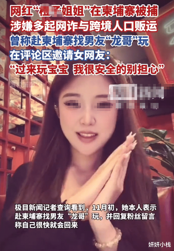 据了解,该网红在11月初到柬埔寨看望男友“龙哥”,并发布多条视频。11月1日有网友提醒其在柬埔寨要注意安全,该网红还邀请网友到柬埔寨玩,并声称这里很安全。