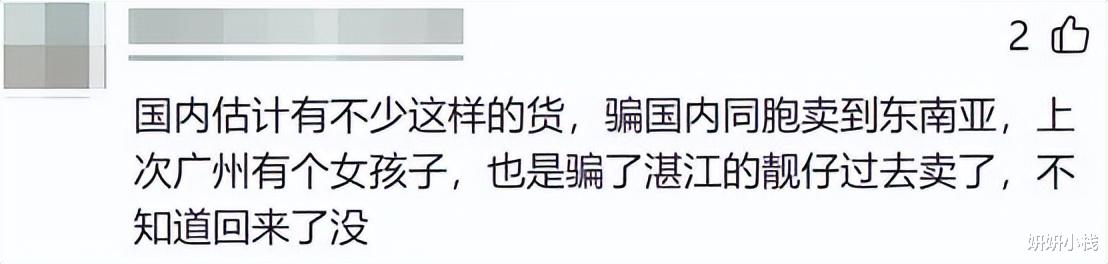 还有网友认为,国内估计有不少这种坏家伙,专门骗自己人,然后把人卖到东南亚去。