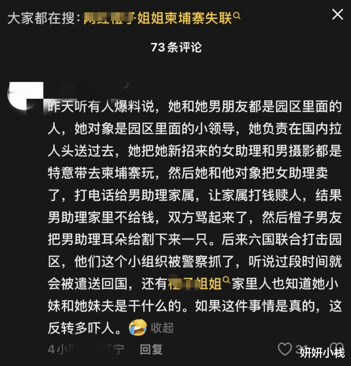 大反转!女网红在柬埔寨失联?其姐姐发布多条视频哭诉原本13日回国,竟然于今未归引起了网友们的关注。