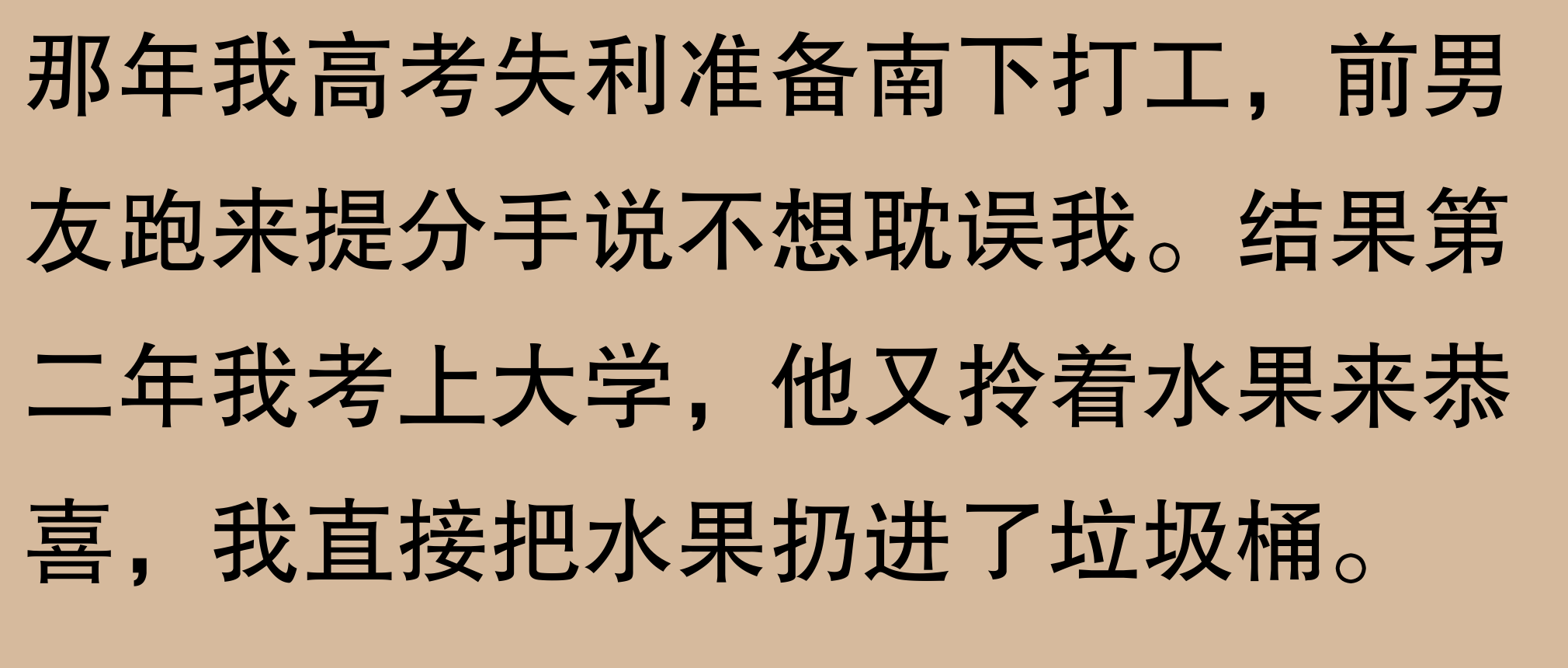 那年我高考失利准备南下打工,前男友跑来提分手说不想耽误我。结果第二年我考上大学,他又拎着水果来恭喜,我直接把水果扔进了垃圾桶。
