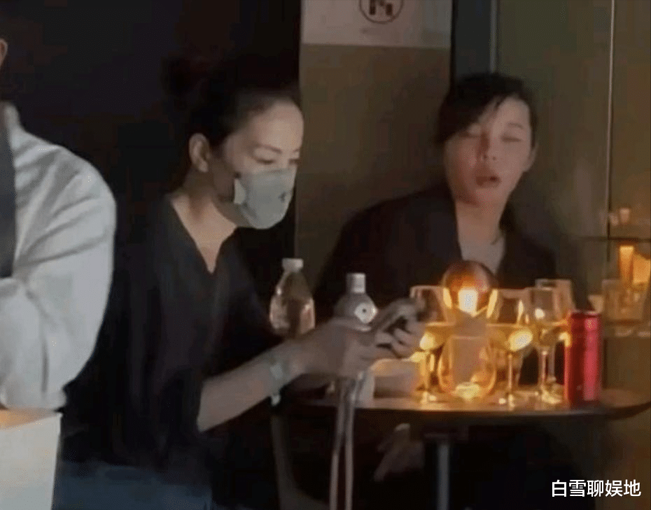 演唱会刚开始的时候,王菲还是听还是挺平静的,一会儿刷刷手机,一会儿喝点酒,跟朋友闲聊。