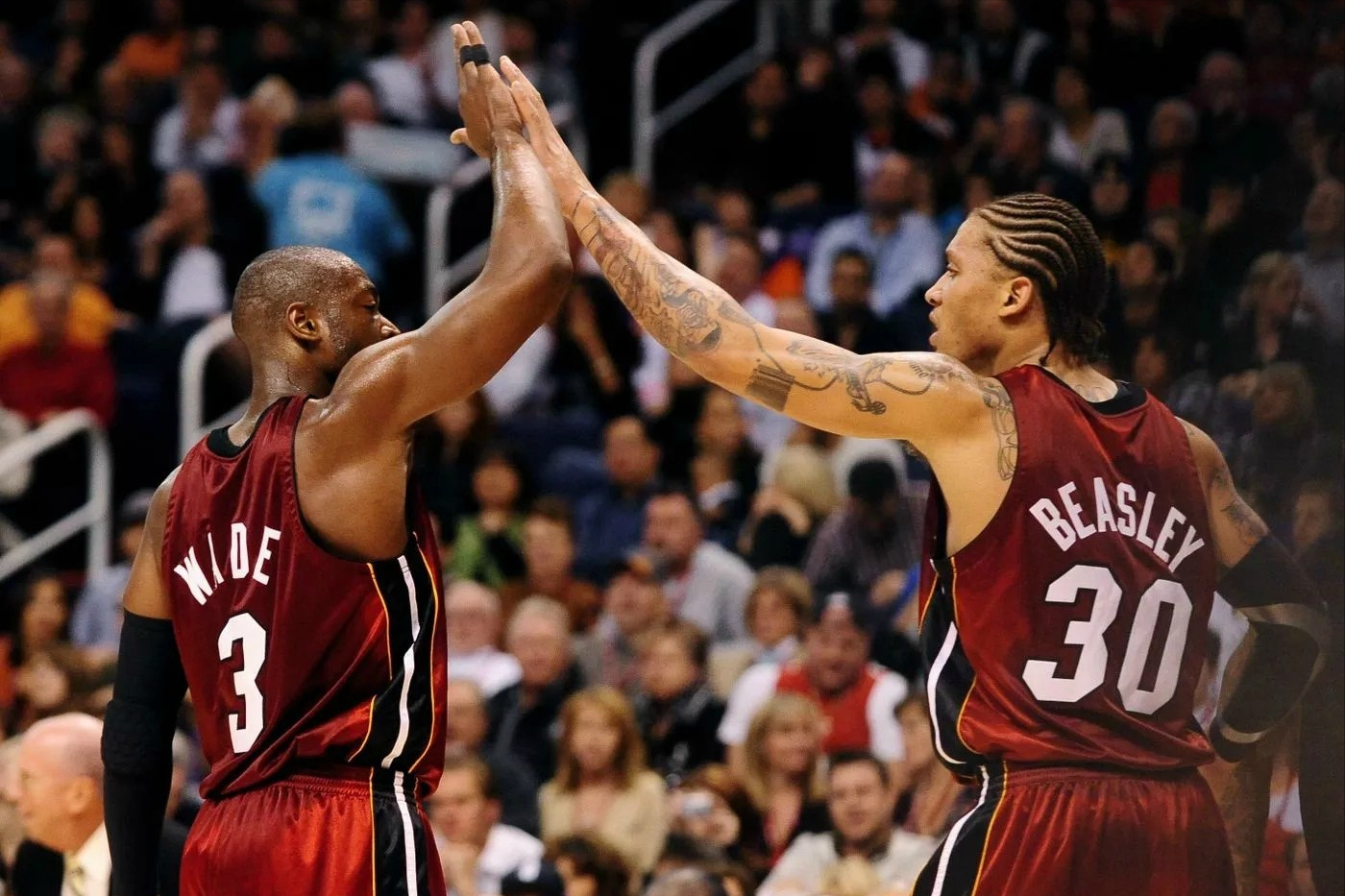 10赛季季后赛,韦德最大的帮手是查尔莫斯,二年级的比斯利,季后赛首轮1:4不敌三巨头凯尔特人,但韦德场均33.2分5.6板6.8助,56.1%命中率,打爆了绿军后场,恐怖实力尽显无疑。