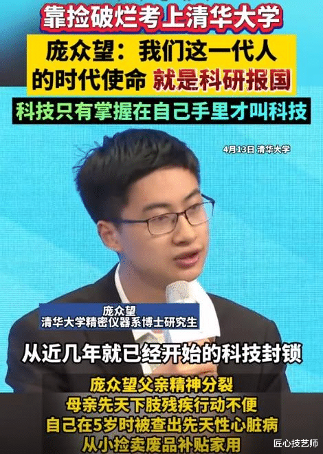 684分!这个数字,是无数寒门学子梦寐以求的成绩,也是庞众望努力的最好回报。他考入了清华大学,这所无数人向往的学府,为他提供了实现梦想的平台。清华的校门,不仅仅是知识的殿堂,更是他改变命运的阶梯。 大学期间,他拒绝了所有好心人的援助,靠助学金和兼职维持生活,同时保持着优异的学习成绩,并担任团支书,获得学习进步奖。毕业后,他直接攻读清华大学博士学位,这背后是多么的勤奋和毅力! 他用行动诠释了“天道酬勤”的真谛。