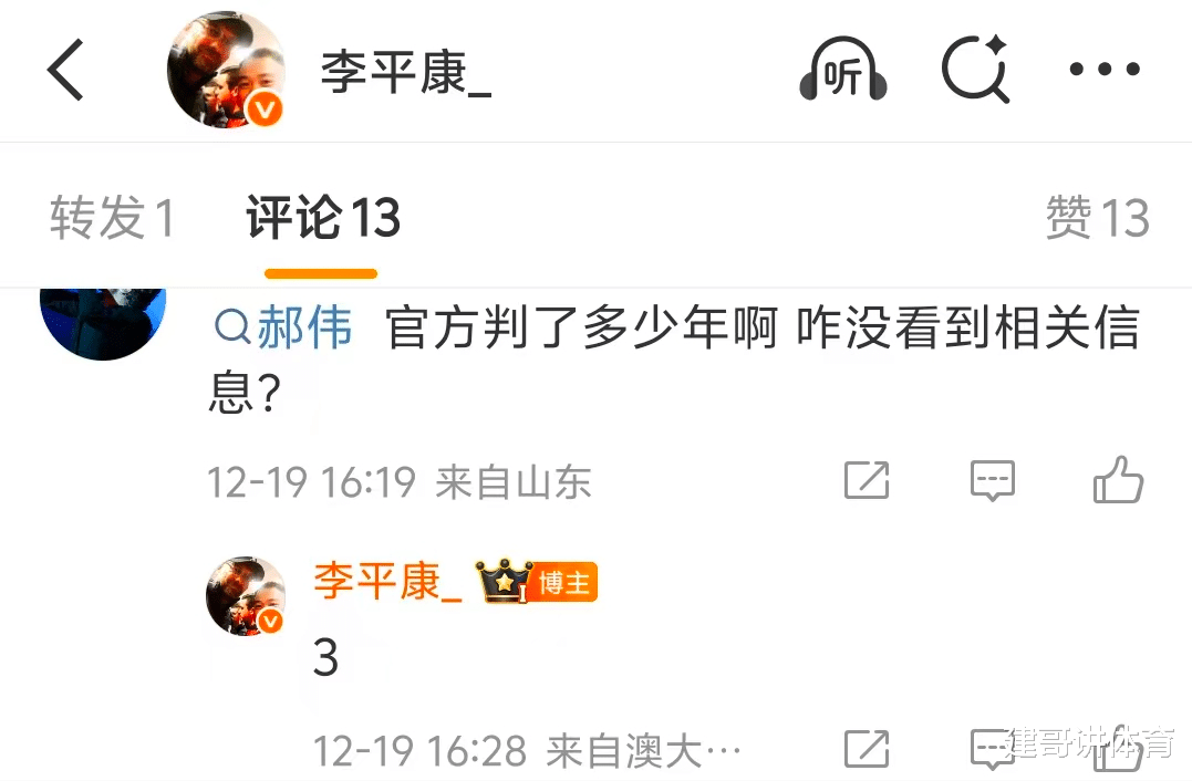 当记者苗原爆料完足协第二批处罚名单的情况后,另一位知名媒体人李平康也在个人社交上谈论了此事,随后李平康和粉丝互动的时候,也回答了前泰山队主教练郝伟的情况,李平康明确的说出郝伟的处罚年限是3年。虽然不知道李平康爆料的郝伟处罚年限是否真实,但感觉他爆料泰山队的消息一直都非常有权威性,这次说郝伟的事情应该还是可以相信的。