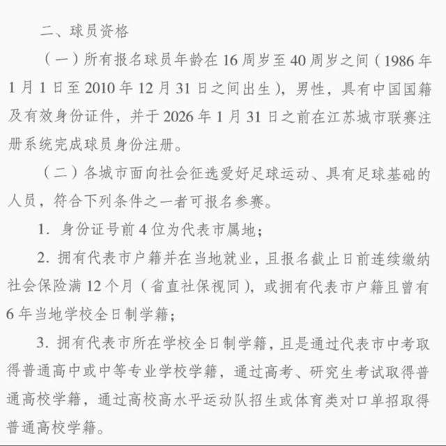 今年“苏超”的球员资格规定做了修改,叠加更为严格的限制条款。