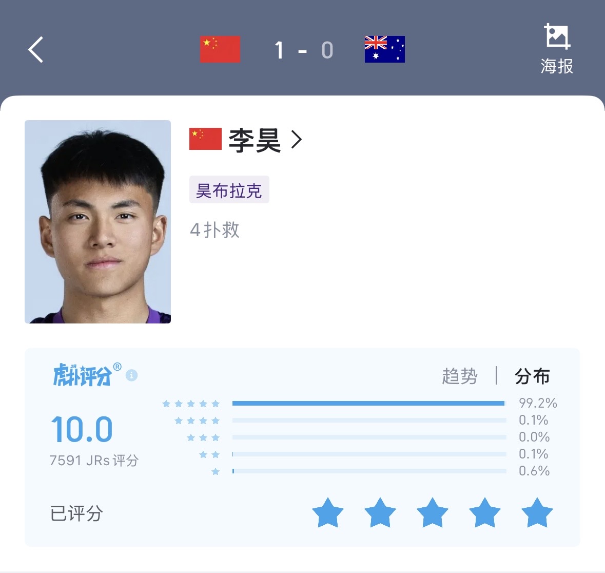U23亚洲杯小组赛第二轮,中国1-0击败澳大利亚登上小组头名。毫无疑问,李昊是目前这支U23国足发挥最出色的球员。