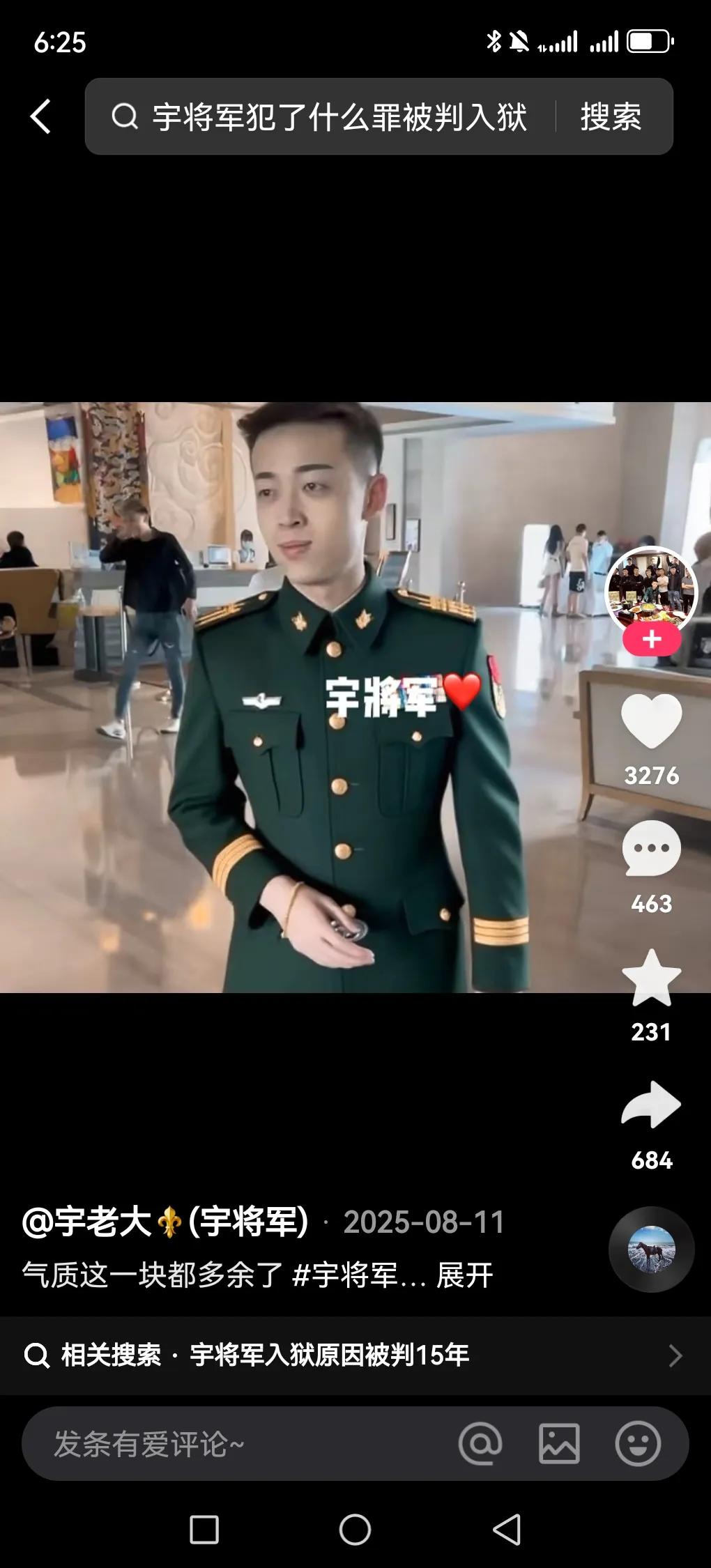 网红宇将军(不是真的将军,是网名),曾是爱打架的精神小伙,也曾带着一车人去真实狗磊,最后,被狗磊手下真实的跑丢了鞋,所以玩黑社会这方面宇将军远远不如狗磊,可惜狗磊踩缝纫出来快手还是让他播,但宇将军被封杀而且进局子了,据说本来宇将军该放出来了,可能又因为打架涉黑又被加刑十五年! 宇将军如果不犯事,现在应该和张诗尧一样,可以提个劳斯莱斯了,宇将军手下现在还分布快手,比如大懿,江东,肖天赐,北北,坤老大等众多朋友,这些人目前还在网络上,至于和张诗尧闹矛盾是剧本,可惜宇将军最火的时候入戏太深,江湖上传“宇将军选择了真实,放弃了热度。”