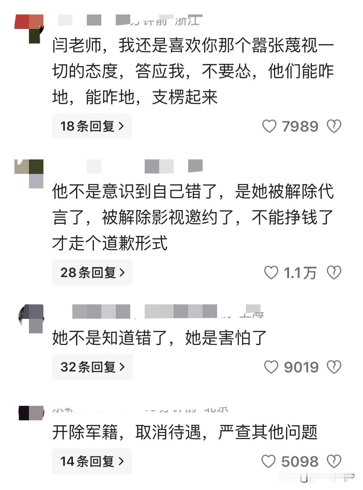 闫学晶发长文道歉,网友却炸了:你是知道自己错了,还是怕挣不到钱了? 前几天,闫学晶直播时说儿子拍戏片酬低、家里开销大,被网友狂喷“炫穷”“不食人间烟火”。 接着儿子考学的事又被翻出来,中戏连夜辟谣“新疆班”传言。 压力之下,闫学晶在朋友圈发了篇小作文,说自己“灵魂疼醒了”“要对百姓有敬畏”…… 结果网友根本不买单! 热评第一喊她“别怂,支棱起来”,更多人直接开怼: “不是知道错了,是代言没了、戏约黄了才出来走个形式!” “她不是后悔,她就是怕了。” 你怎么看?是真反省, 还是危机公关? 来评论区聊聊!
