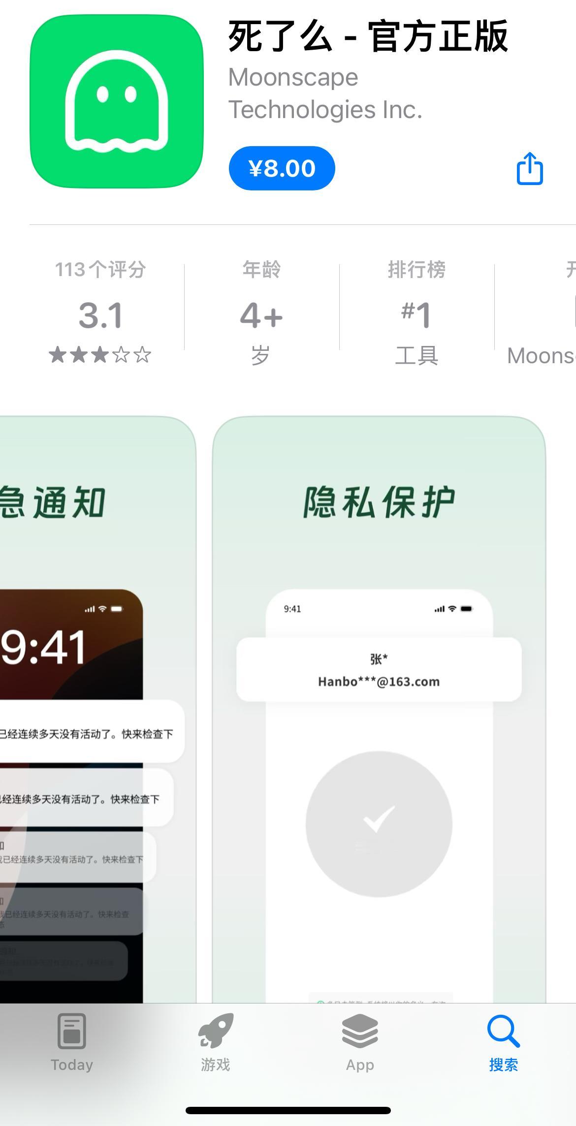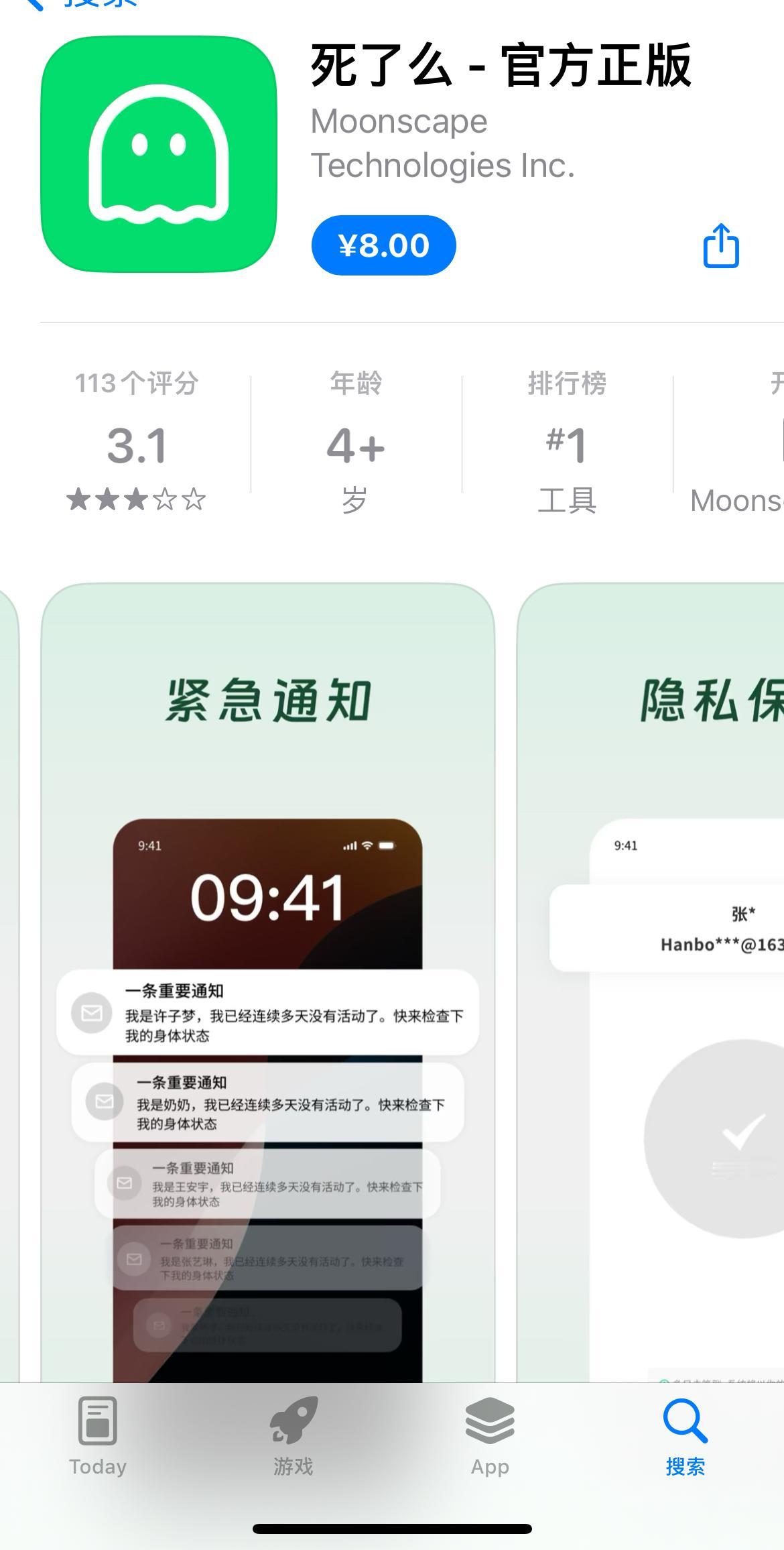 死了么APP,搜了下真有这个,在苹果市场售价8块钱。没想到真有很多人用,对于很多独居的老人、年轻人都能用得上,每天打卡,为的就是让别人知道还活着。1000元开发成本,没想到现在估值已经达到1000万,因为创始团队计划以100万出售10%的股份,这是一个奇幻的创业模式。不过,没看出来这个APP的商业价值,难道就因为下载量高?饿了么新模式