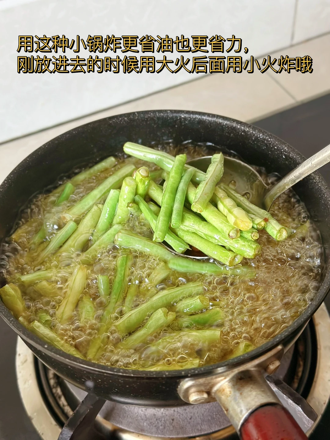 2. 用这种小锅炸更省油也更省力,刚放进去的时候用大火后面用小火炸哦