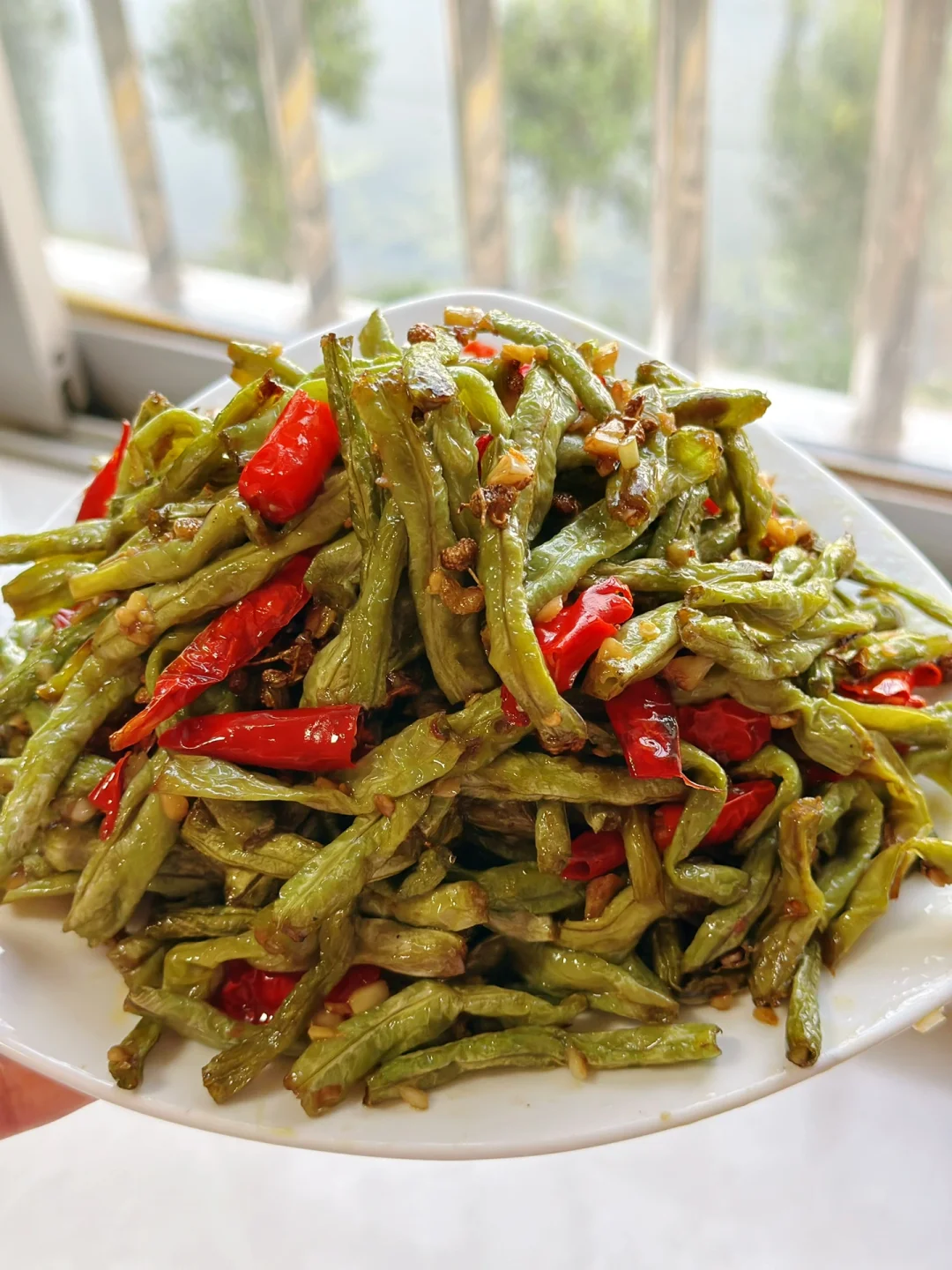 1. 四季豆折成自己想要的长度清洗干净待用