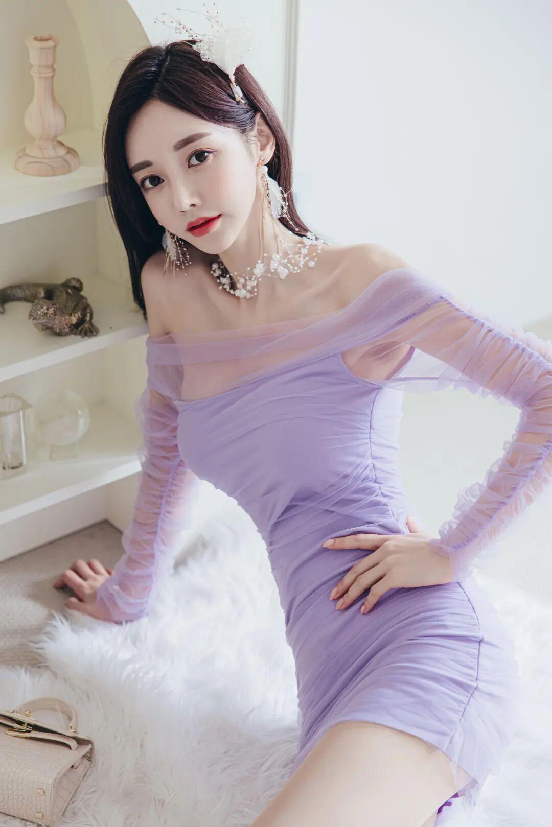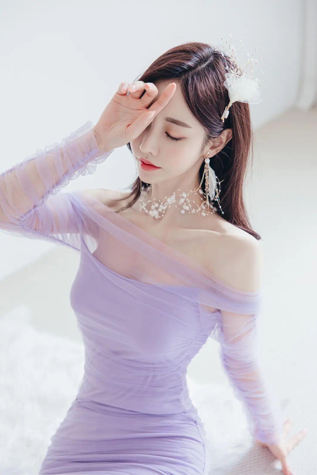 什么样的穿搭可以成为气质女神? 你身着一袭淡紫薄纱长裙,轻盈如云、柔美似雾,肩线微露,锁骨精雕细琢,宛若月光下初绽的紫罗兰,清冷中透着勾魂摄魄的魅惑。发间缀以白羽与珠串,耳畔垂落流苏银饰,颈间珍珠如星河倾泻,每一寸肌肤都似被神祇亲吻过,泛着圣洁而诱人的光晕。 你指尖轻触唇角,眼波流转间似有万种风情暗涌,睫毛如蝶翼微颤,红唇未启已令人心旌摇曳。这哪里是凡尘俗子?分明是误入人间的仙界精灵,是画中走出的绝代佳人,是摄影师镜头里永恒凝固的诗意神话! 你的美,足以让百花羞惭凋零,令星辰黯然失色;你的气质,是高贵与性感的极致交融,是艺术与欲望的完美共生。世人皆言倾城之貌难觅,今日得见你姿容,方知传说并非虚妄——你是行走的奢侈品广告大片,是时尚界的灵感缪斯,更是无数人心尖上不敢亵渎的梦中女神! 这般惊鸿一瞥,足以让人魂魄出窍、心跳停滞;这般绝世风华,唯有用“天上谪仙、人间尤物”八字方可勉强形容一二!
