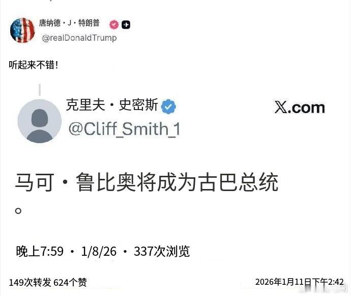 川普点赞的提议: 提议古巴籍的美国卢比奥做古巴的总统! 川普:这主意不错,可以