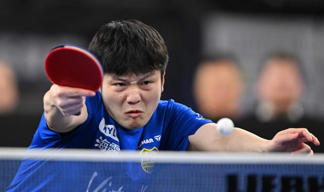 1月4日,萨尔布吕肯队球员樊振东在男子单打比赛中回球。最终他3比0战胜富尔达-马伯策尔队球员奥恰洛夫。当日,在德国新乌尔姆举办的乒乓球德国杯决赛中,樊振东所在的萨尔布吕肯队3比1战胜富尔达-马伯策尔队,夺得冠军。新华社发(乌尔里希·胡夫纳格尔摄)