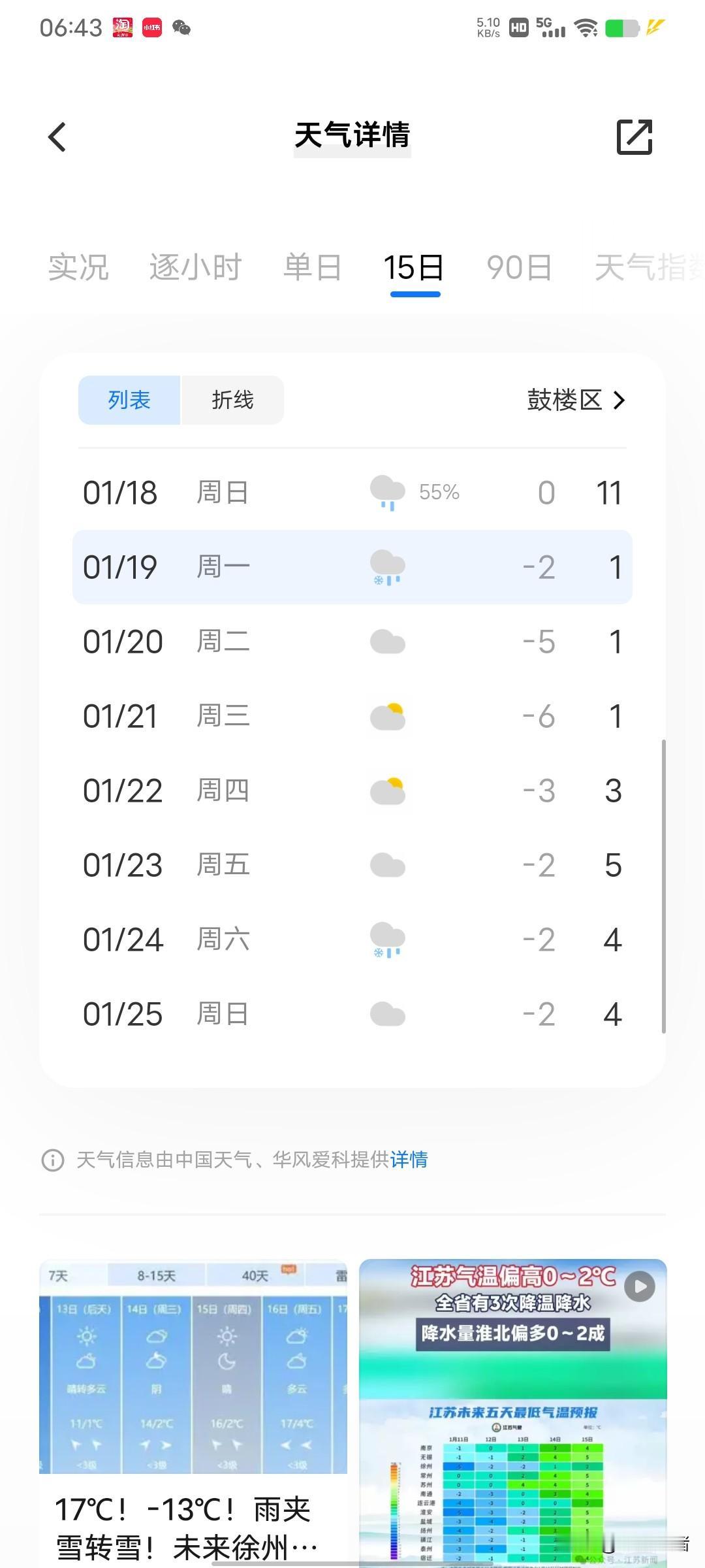 徐州这天气预报也太随意了吧?天气预测变化一天竟然从零下18度变成零下6度了。看样