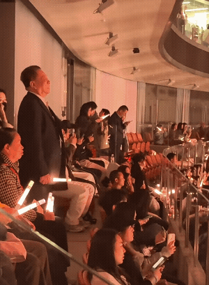 陈楚生在台上唱《获奖之作》, 老爸全程站着认认真真盯着大屏幕, 他骄傲自豪但心里