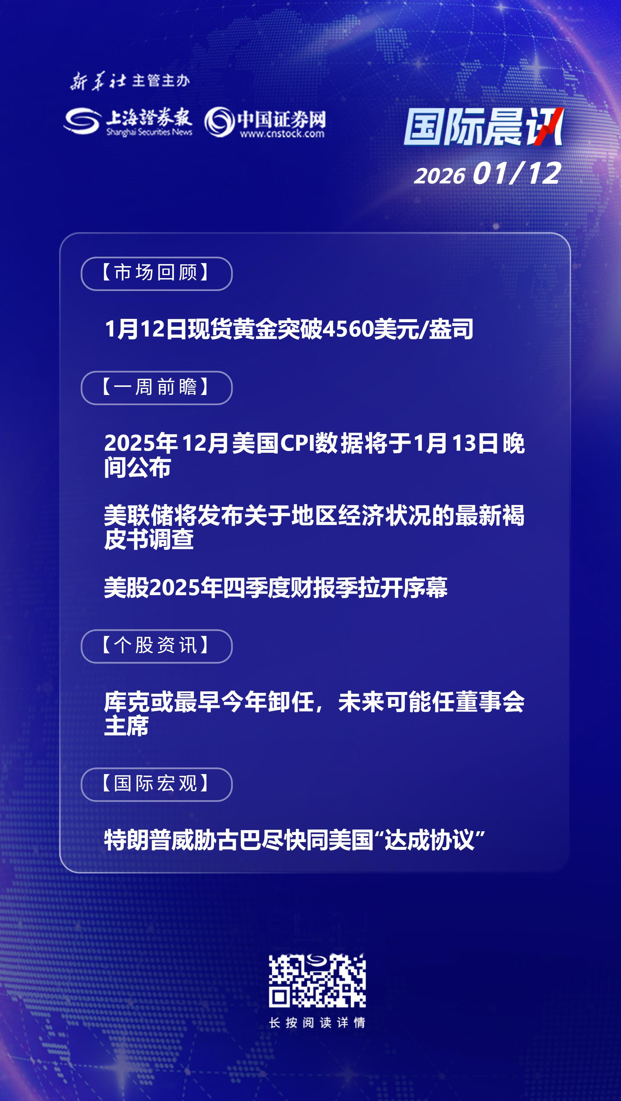 北京时间1月12日,现货黄金突破4560美元/盎司,时隔两周再度创下历史新高;现货白银突破82美元/盎司,日内涨约3%。