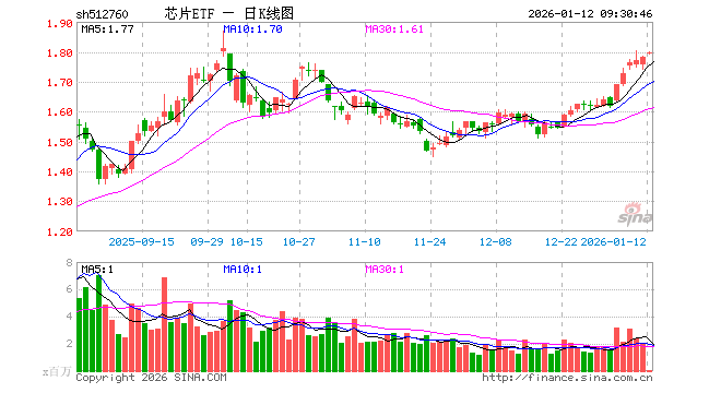 1月12日,芯片ETF(512760)开盘涨0.62%,报1.792元。芯片ETF(512760)重仓股方面,中芯国际开盘跌0.28%,寒武纪涨2.91%,海光信息涨0.00%,北方华创涨0.11%,澜起科技涨1.34%,兆易创新涨2.07%,中微公司涨2.47%,豪威集团涨0.01%,长电科技涨1.94%,芯原股份涨1.99%。
