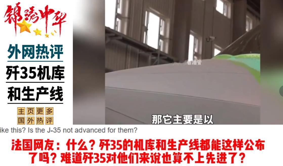 外国网友看歼35战机车间公开: 韩国网友:还说不是抄袭吗?缝缝补补,而且质量很差,都能看到这么多部位生锈。 立陶宛网友:这不是能看见吗?说还说什么隐身战斗机,这么大怎么隐身? 法国网友:歼35战机的机库和生产线,都能这样公布了吗?难道歼35战机对大国来说,也算不上先进了吗? 美国网友:按照目前的状态,估计下次阅兵的时候,歼35战机也只能用来拉烟了。 澳大利亚网友:以前我还不相信,现在看到五代机都这样展示,说明他们的六代机很成功。 德国网友:这都能放出来了,说明六代机马上要服役了,白帝已经在造了。 巴西网友:全世界能造五代机的国家都没几个,可想而知他们现在有多么强大。 巴基斯坦网友:生产线都能公布,说明外贸版歼35战机很快就会发布,我希望巴基斯坦能第一个使用,这次还拿阵风战机练练手。 美国网友:歼20感觉比歼35要大很多,什么时候把歼20的也曝光一下? 日本网友:有谁知道这个机库和生产线的具体位置,我们愿意出高价回收线索。 其实大家可以看到,我们展示的一个绿皮歼35战机,是在车间生产的时候,由各种铆钉和各种的零件组成,当然是绿色。这都是没有完全涂上隐身涂装的原始版本,而有一些揣着明白装糊涂的网友,故意就在贬低,实际上我们能够公开歼35战机的生产车间和机库,就说明我们有足够的自信来展示了。 因为歼35战机这已经在我们这边,不算先进了。按照我们这边是展示一代,生产一代,设计一代和发展一代的目标,歼35战机已经是不算最先进的战机了,所以可以公开展示,让大家看看我们的实力,这个自信我们是有的。 但愿看到这些歼35战机以后,各位能够知道现在咱们国家的军事水平,已经到了什么地步。