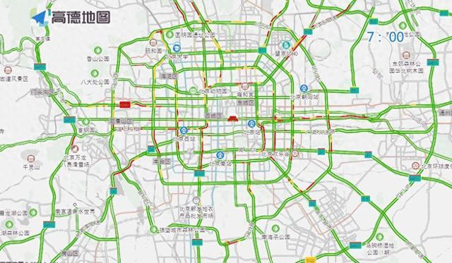 冬季早晚高峰自驾车通勤较多,城区环路、联络线等主要道路通行压力较大。早高峰期间,城区环路部分路段,以及菜户营南路、通惠河北路、西直门北大街、德胜门外大街、圆明园西路至万泉河路、阜石路、莲石东路、京通快速等道路进城方向,以及京藏高速、京承高速、京港澳高速、机场高速等高速公路进京方向车流量较大,高峰时段为7:00—9:00,周一、周二早高峰通行压力将尤为突出。