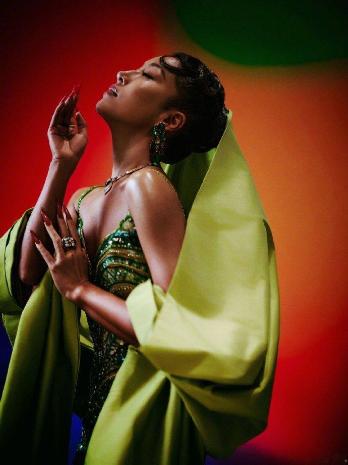 吉克隽逸 香菜公主 谁能想到绿色礼服还能这么解读,吉克隽逸真的太会玩了,香菜公主这个名号非你莫属,美得很高级!