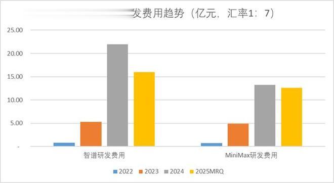 从营运侧来看,智谱2024年经营性现金流支出了22.45亿元,MiniMax支出了18.09亿元,智谱略多。截止报告期最新的现金流余额,智谱为25.52亿元,MiniMax为25.39亿元,二者相差不大。