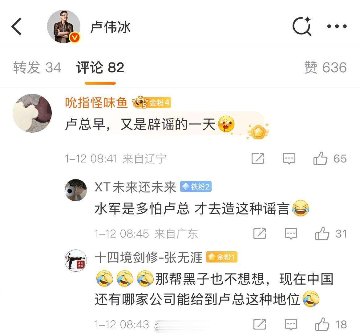 #小米卢伟冰辟谣辞职#小米卢伟冰晒上班动态,辞职传闻真是扯淡。[吃瓜]