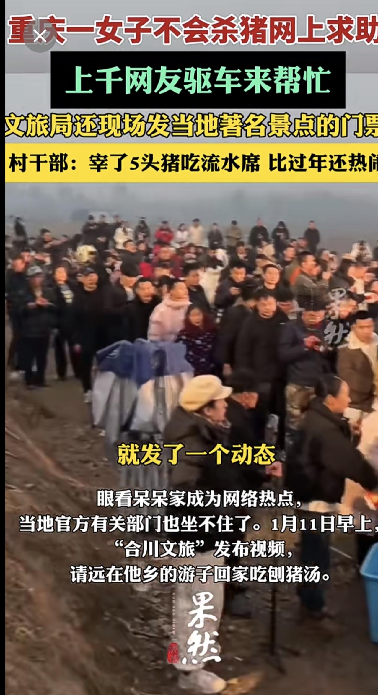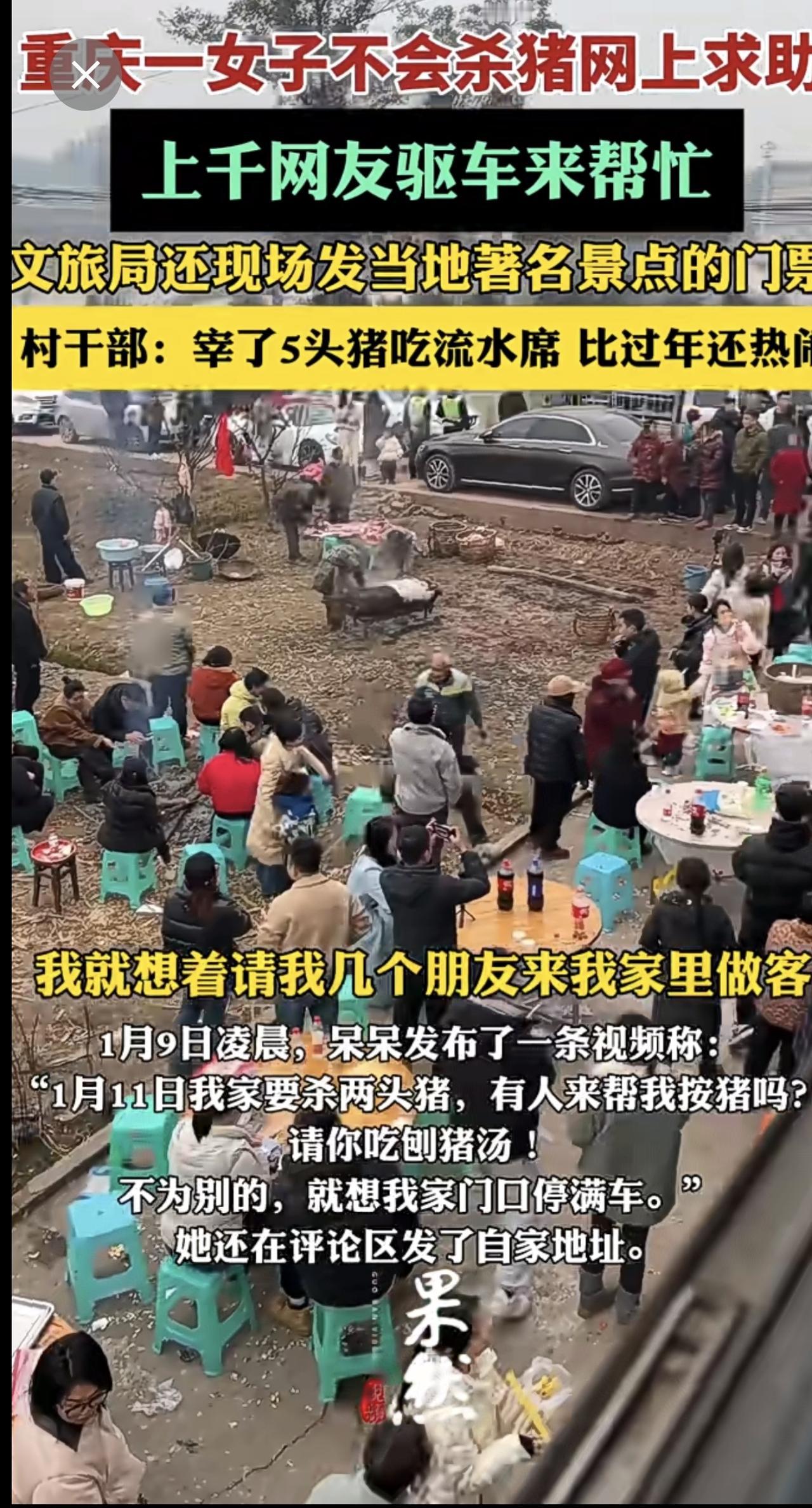 重庆一女子不会杀猪网上求助,上千网友驱车来帮忙