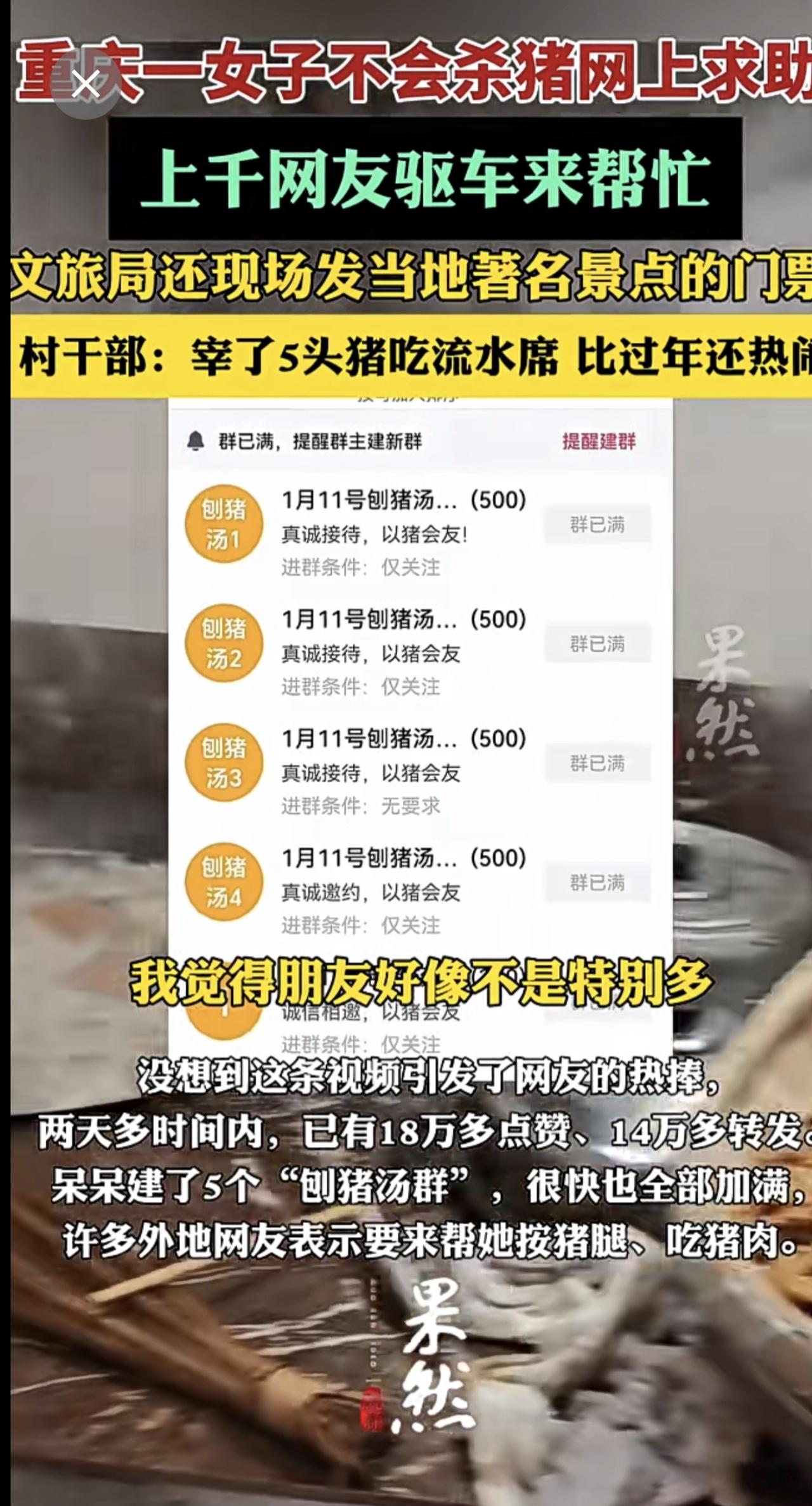 现在网友的行动力真不是盖的!重庆一个女生发帖求助杀猪,结果网友直接组队助阵,原本
