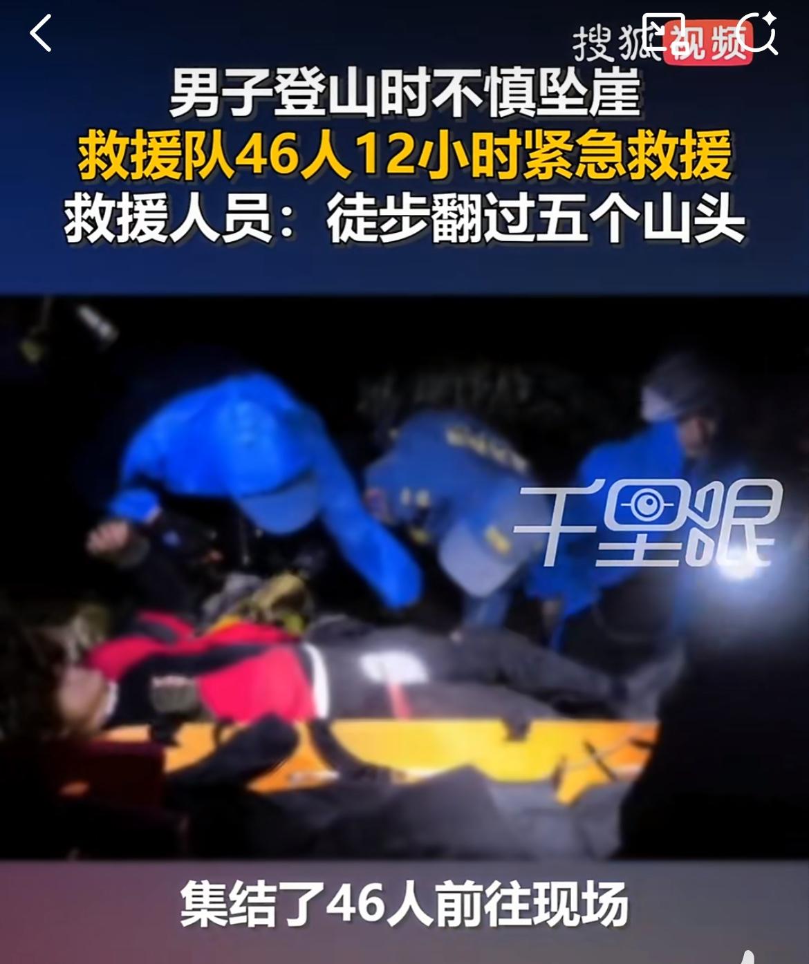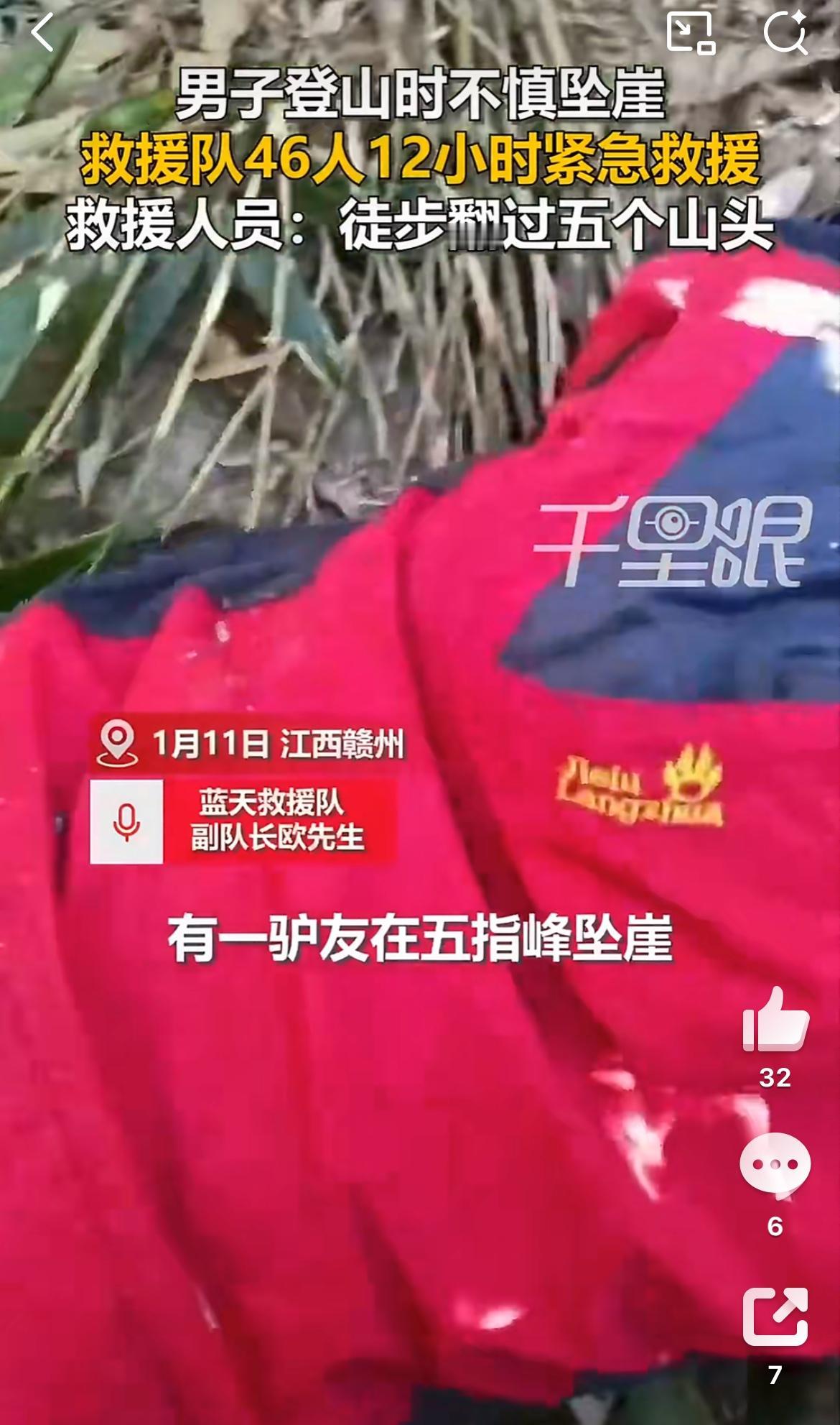 一驴友徒步江西赣州五指峰坠崖,46人花近4小时救援,出动无人机。事情发生于1月11日,改名男子独自一人徒步五指峰,不小心坠落山崖,幸好有手机信号,报警求助。附近的蓝天救援队员马上集结了46人,快速急行军,差不多4个小时翻越5座山,终于找到坠崖的男子,因为男子受伤无法行走,从山崖里无法把人抬出来,不得已动用大型无人机把男子从山崖下吊运到山顶平台,由救护车接走。五指峰莽山旅游 湖南五指峰景区