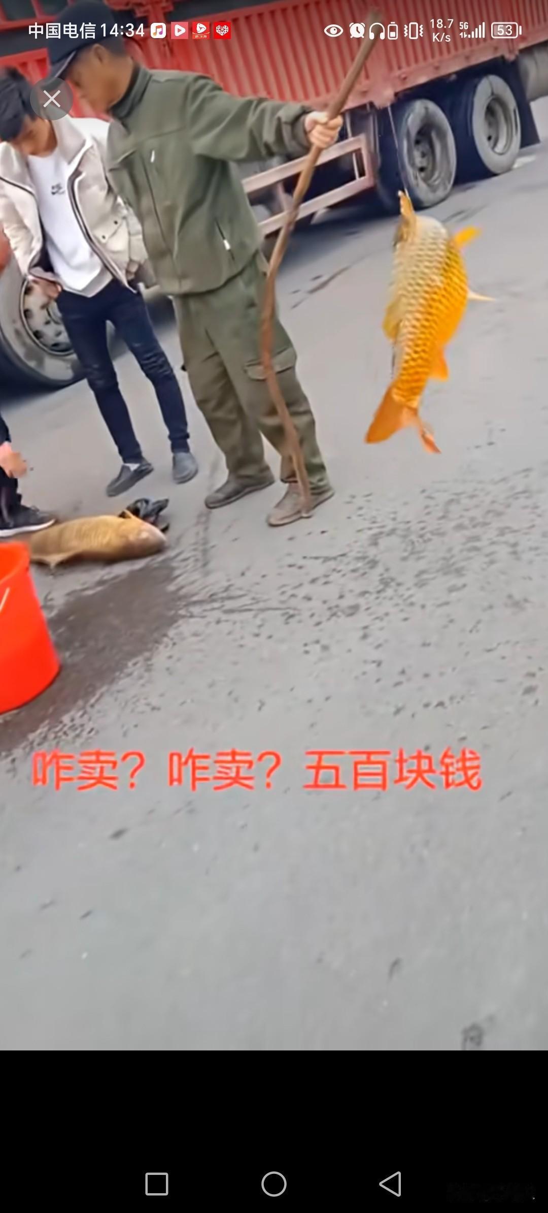 大爷跟钓龟卖是同一帮人吗? 开价500卖,一条金鲤鱼。