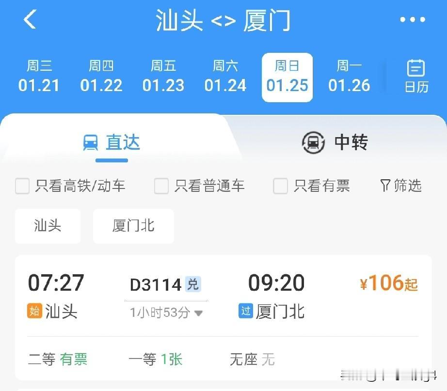 1月26日起,汕头到厦门最快1小时24分并且有多趟车次 最早开行的汕头到厦门的