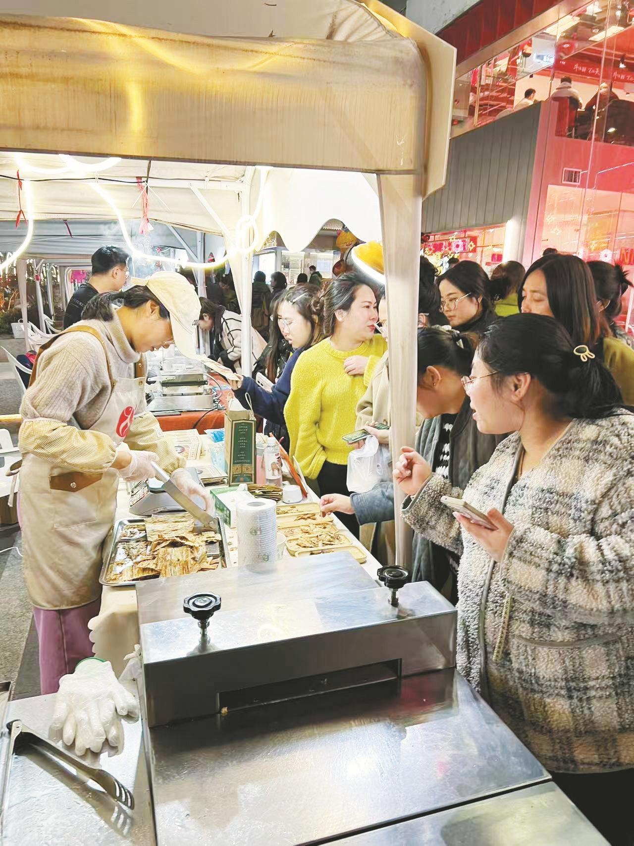 “下次开庙会陈老板一定过来设摊,希望绍兴的本地市民多买点他的烤鳗鱼片,照顾他的生意。”