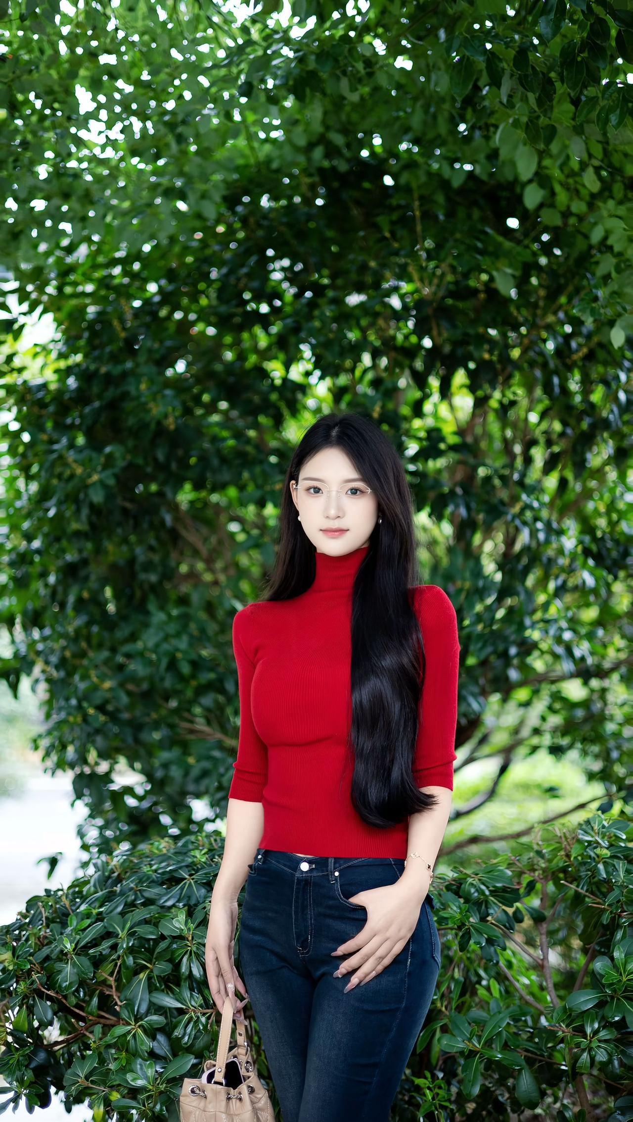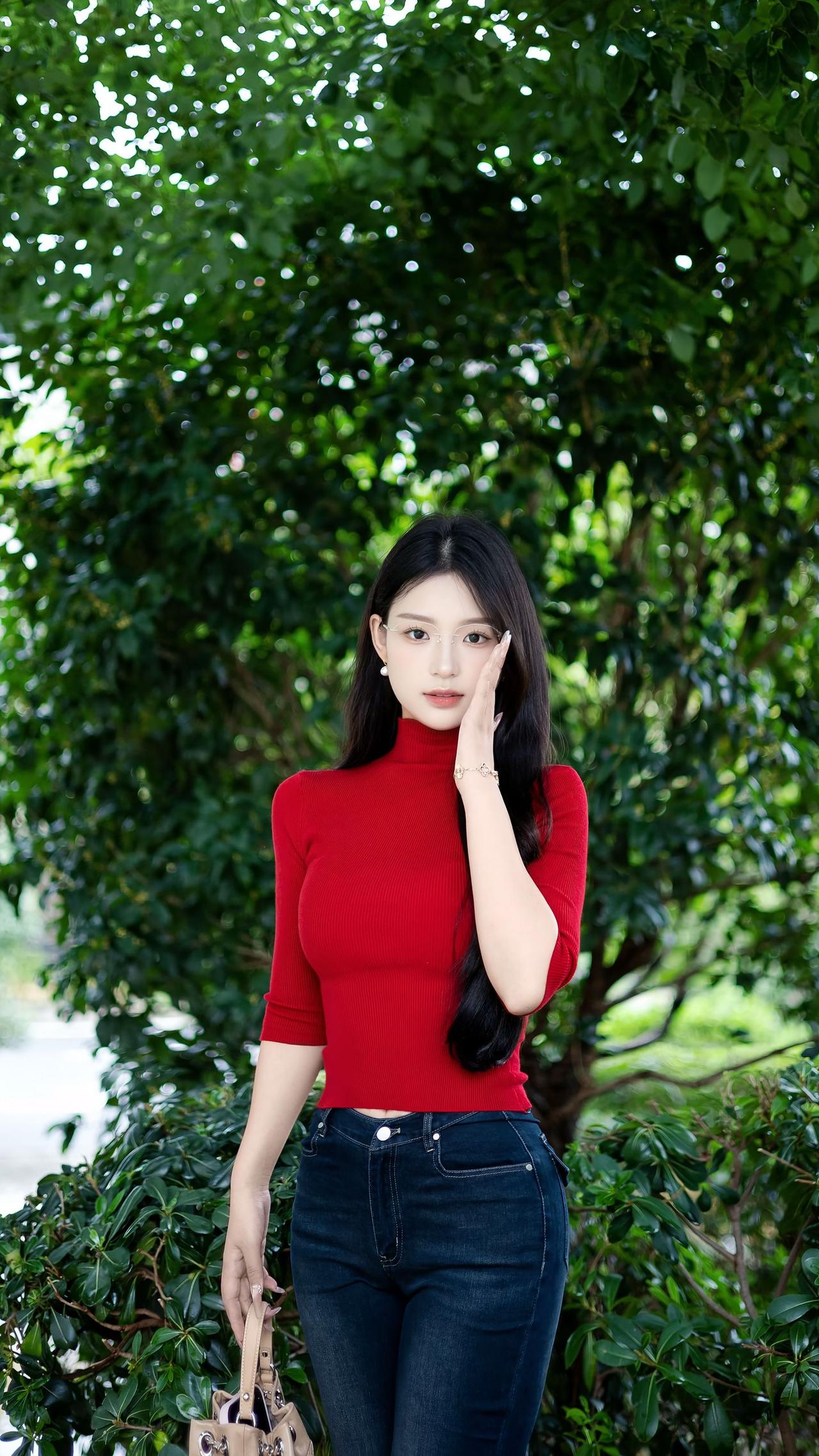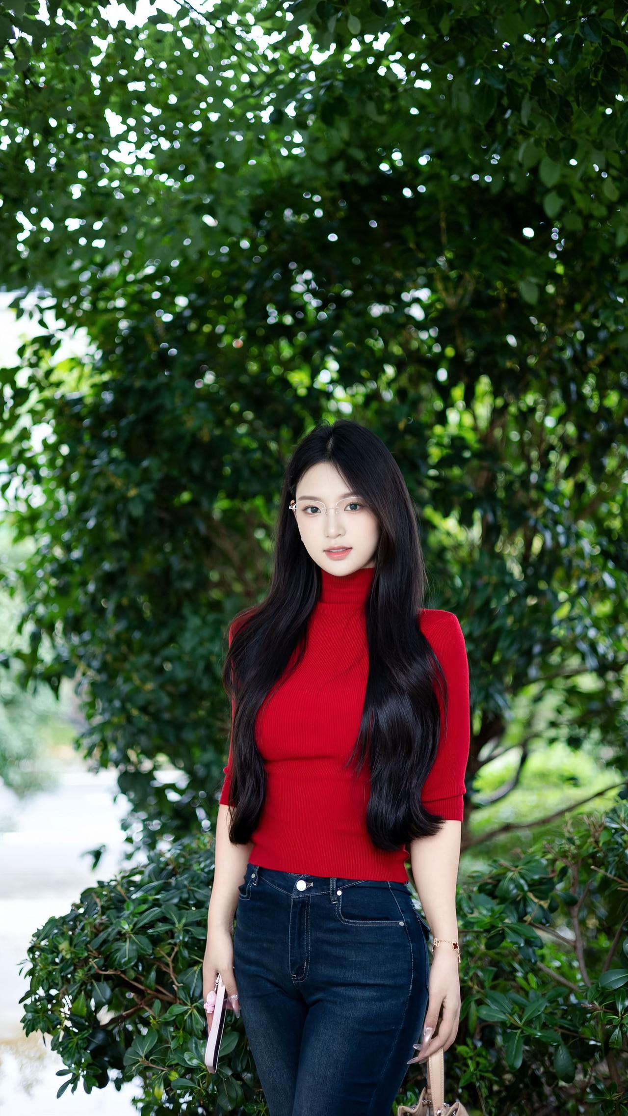 端庄大气的打扮 但眼镜增加的不是书卷气而是妖气