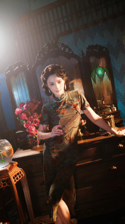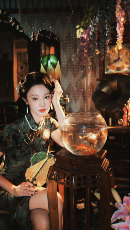 优雅旗袍,红妆惊艳,花枝招展,古典韵味