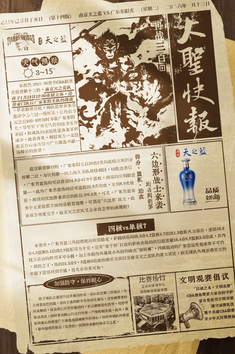 据南京男篮发文,明晚19:35,2025-2026赛季CBA联赛常规赛第14轮,南京天之蓝队将回到主场迎战广东东阳光队。本赛季首轮两队在东莞体育中心便上演了一番大战,最终南京天之蓝队加时落败。此番面对状态正盛的广东男篮,期待双方在五台山体育馆能再战三百回合!最近五次交手,南京天之蓝取得1胜4负。