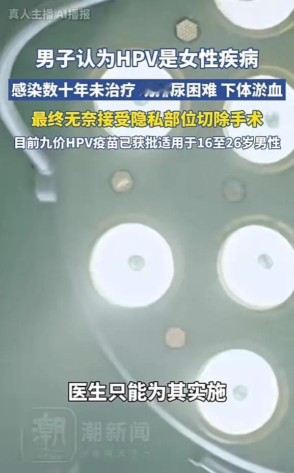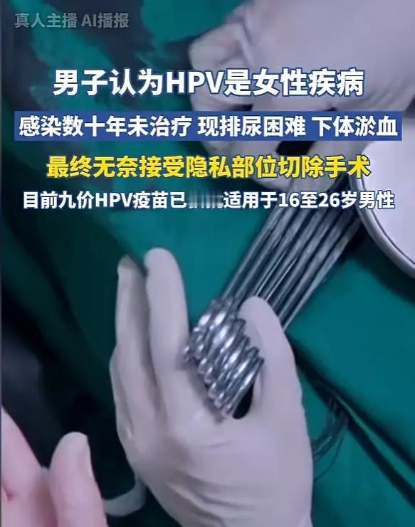 “悲剧还是发生了!”浙江杭州,一男子一直以为HPV是女性疾病,所以感染了十几年也没治疗,结果最近排尿困难,下体还出现淤血,去医院检查,竟被确诊为阴茎恶性肿瘤!只能将下体割除治疗。网友:忽视疾病的后果! 这位63岁的杭州男子十多年前就发现隐私部位有些“小凸起”,当时医院检查确认是HPV感染。可他总觉得HPV是“女人病”,对男性没什么影响,就没把这事放在心上。十几年间,那些小凸起时好时坏,他偶尔自己涂点药水应付,从没想过会酿成大祸。 直到最近,他出现异常勃 起症状并伴随剧痛,排尿变得极其困难,下体淤血发紫,才急忙赶到杭州市第一人民医院就诊。医师检查发现,患者隐私部位中段有一个3公分大小的硬块,已经严重压迫尿道。PET-CT检查提示恶性肿瘤可能,最终活检病理证实为“恶性肿瘤”。 由于病情拖的太久,肿瘤体积较大且位于隐私部位中段,医生不得不进行全切除手术。术后虽解决了排尿问题,但患者心理上承受了巨大打击。他没想到十几年前的小感染,会让他失去重要器官。 HPV不是女性专属,男性同样会感染并可能引发严重疾病,隐私部位皮肤出现丘疹或硬块、菜花样隆起、难治性溃疡、包皮口有血性分泌物并伴有恶臭、排尿困难等症状时就要注意,若在4周内无好转,务必及时就医。 保持卫生、避免不洁性 行为、接种HPV疫苗都是有效的预防措施。2025年4月起,九价HPV疫苗已获批适用于16-26岁男性接种。 健康问题不分性别,任何异常都需要及时重视。疾病不会因为我们的忽视而消失,只会随着时间推移加重。 各位读者你们怎么看?欢迎在评论区讨论。