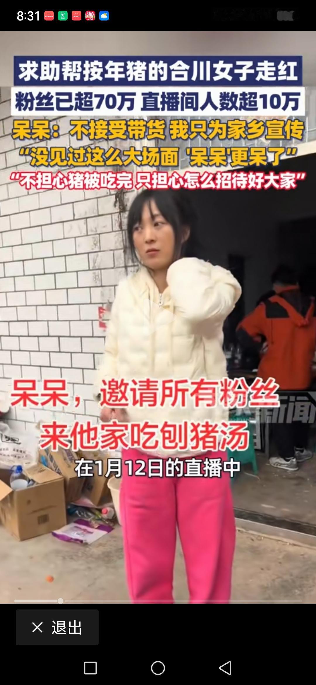 本来马年快到了,马要出来有几步,哭哭马刚刚要火,马到成功,快马加鞭刚要顺口。突然二师兄老猪抢了风头!重庆的两头猪,把合川的热度推到了天上!刨猪汤宴无人不知,这里要火一阵了,还意外成就了一个网红呆呆,本来抖音一千个粉丝。仅仅三天时间就150万了,三天前打死她都不会相信,自己会成为百万粉丝大咖!泼天流量就是泼天富贵!呆呆一夜成名,这两只猪功不可没!应该留下来,但我们估计已经成为美食了,有点可惜!