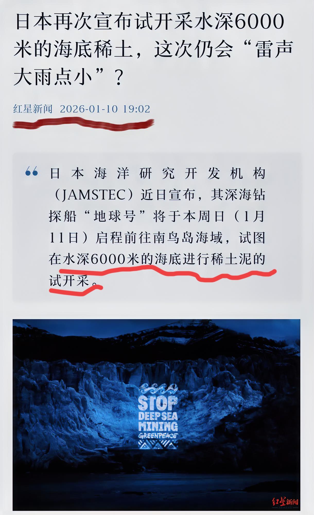 日本宁愿去海底刨泥巴找稀土,也要硬着头皮跟东方大国脱钩,这事儿看着挺魔幻。 其实逻辑特简单:不想过了,准备掀桌子。 在高市这些人眼里,居然觉得现在的日本还能在军事上跟咱们掰掰手腕。 这哪是自信,纯粹是没醒透。 这次咱们反应这么大,明眼人都看得出来,解决那个“终极问题”的倒计时,已经在走了。 想顺利过河,就得先清淤。 既然有人非要跳出来当拦路虎,那正好,拿来试刀。 只有先把这个最跳的打痛了、打服了,等到真正雷霆落下的那天,周边那帮邻居才会懂得什么叫“保持安静”。 这不仅仅是博弈,这是拿谁祭旗立威的问题。日本宣布开采深水6000米稀土元素 稀土战略破局 全球稀土版图 稀土技术之争