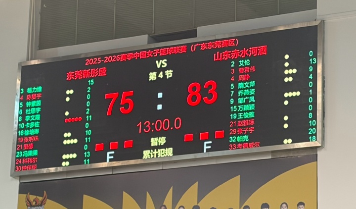 直播吧01月12日讯WCBA常规赛,广东女篮75-83不敌山东女篮,本赛季首次输球,14连胜被终结。