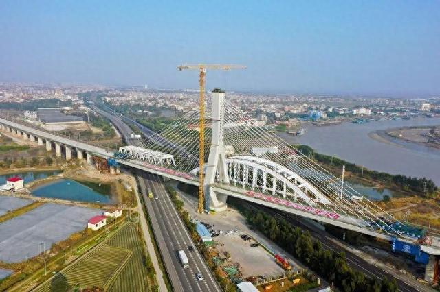 新建福(州)厦(门)高铁木兰溪大桥斜拉桥主梁合龙。