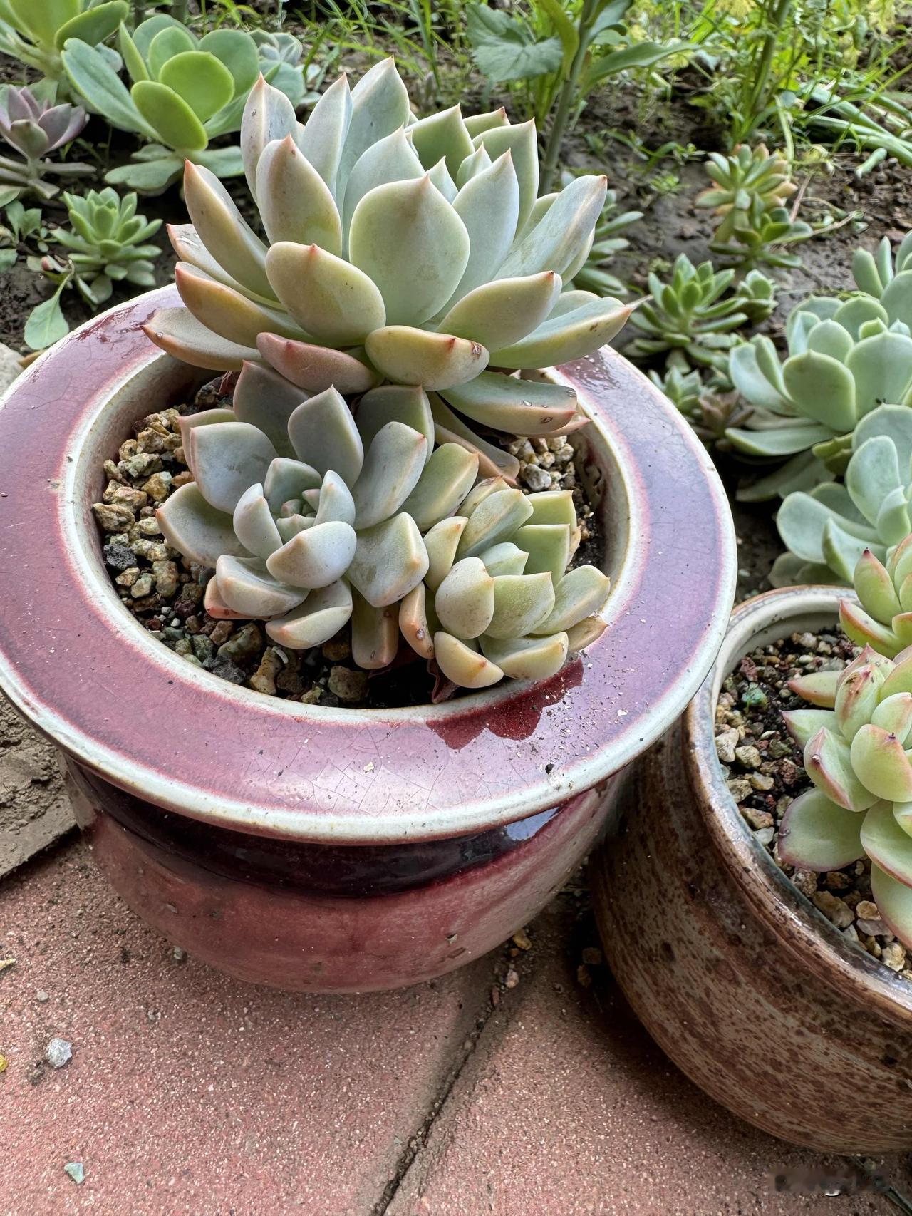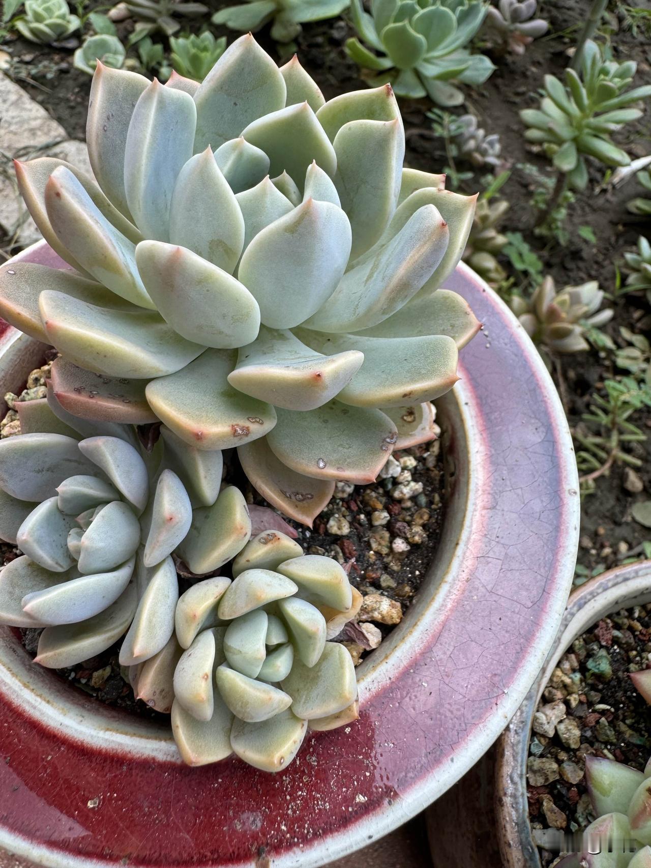 我也超爱多肉红粉佳人!当初我也是被这好听的名字吸引,买了几株小苗。刚到手时,它们小小的,弱弱的,看着有点可怜。 夏天我把它们放到小院子里,让它们享受阳光雨露。嘿,还别说,这一晒一淋,它们就跟打了鸡血似的,越长越精神。现在胖嘟嘟的,叶片饱满圆润,叶尖还泛着一点点红,就像小姑娘害羞时脸上的红晕,可爱极了。 红粉佳人看着娇弱,其实皮实得很。只要别浇太多水,给点阳光,它就能茁壮成长。每次看到它们,心情都会变好。有喜欢多肉的朋友,一定要试试红粉佳人!