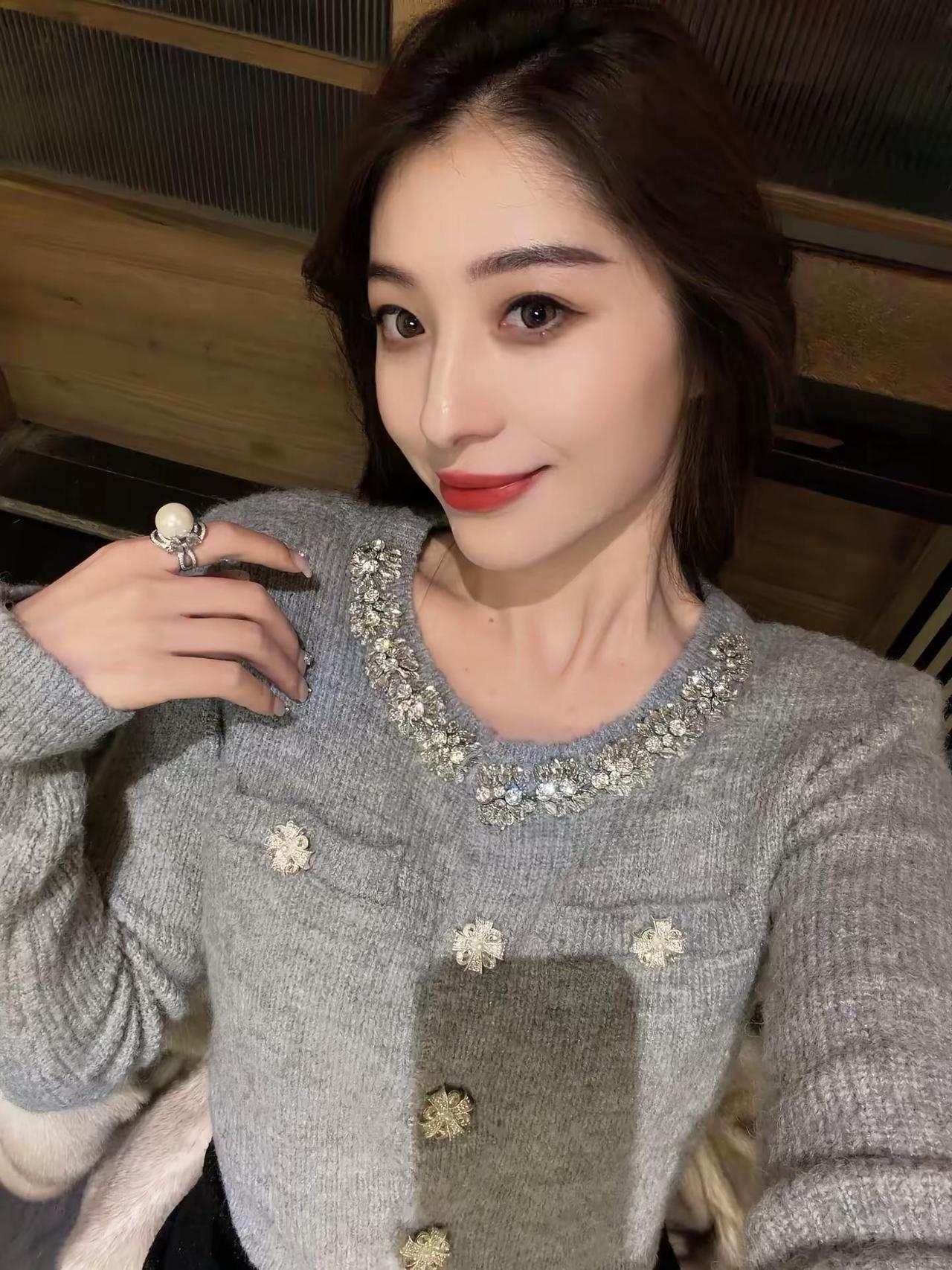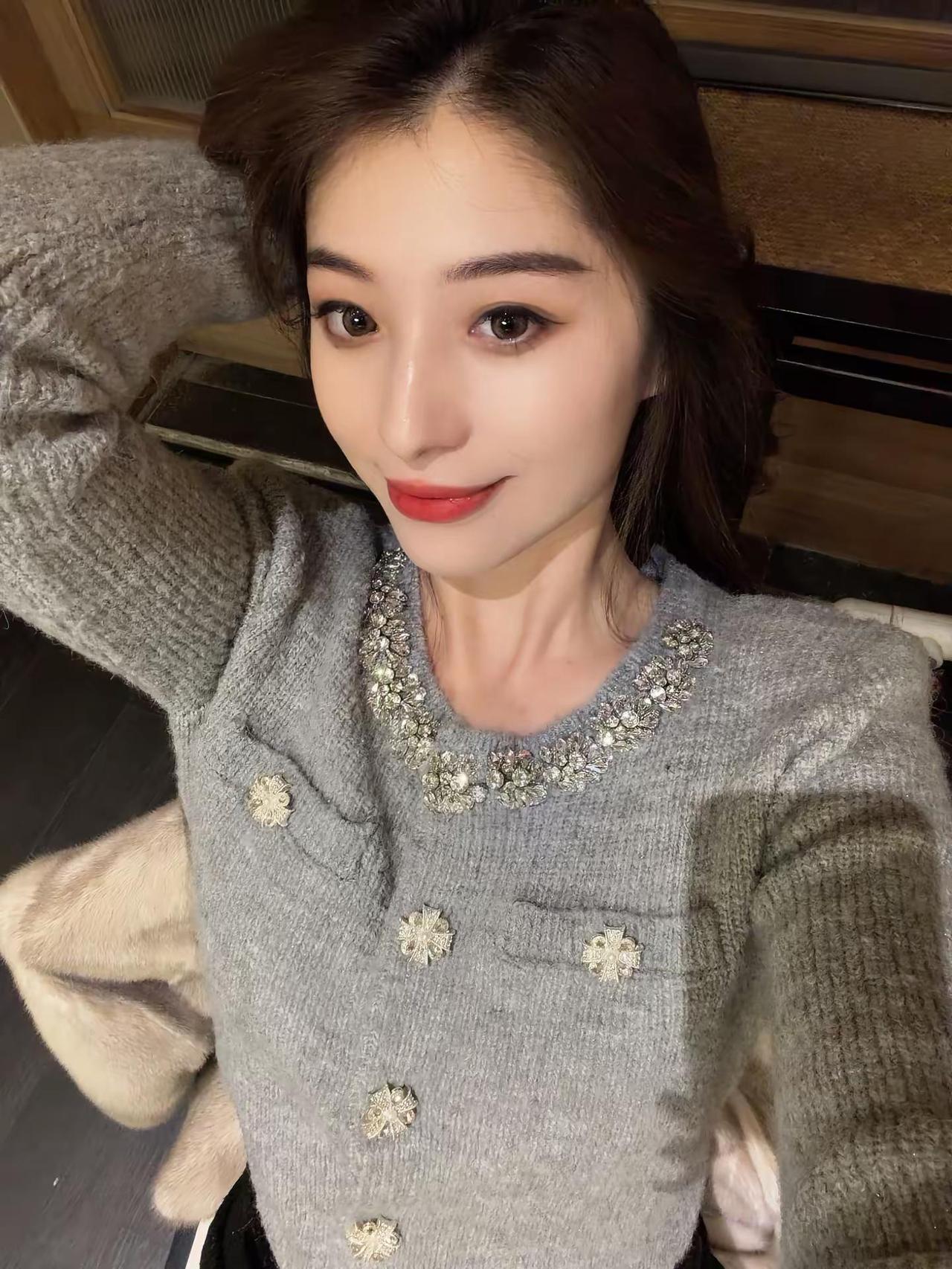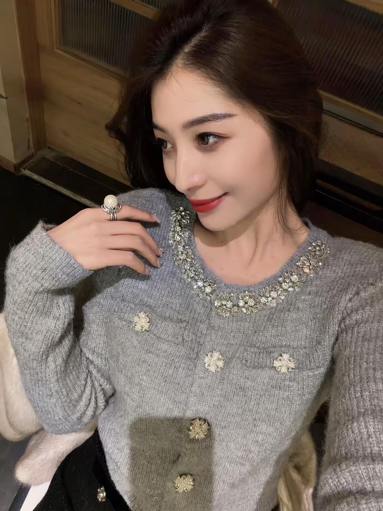 这套穿搭是清新甜美的灰调少女风,把软糯质感和灵动细节融合得很温柔。浅灰宽松针织衫
