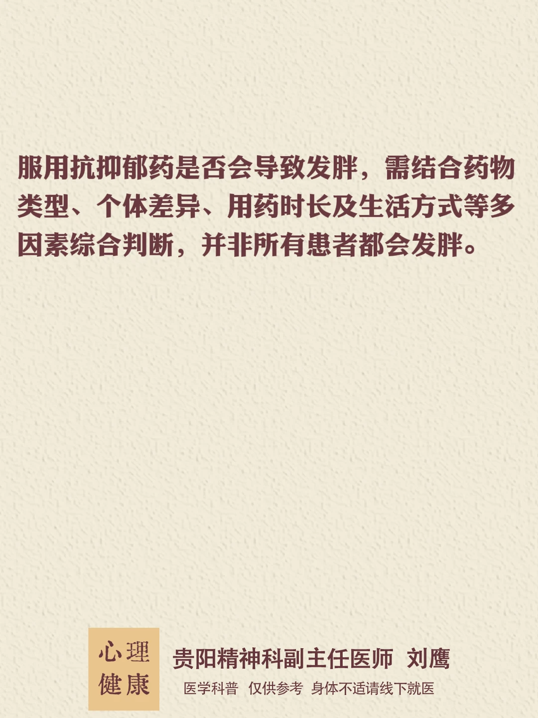 贵阳精神科刘鹰|吃抗抑郁药一定会发胖吗?