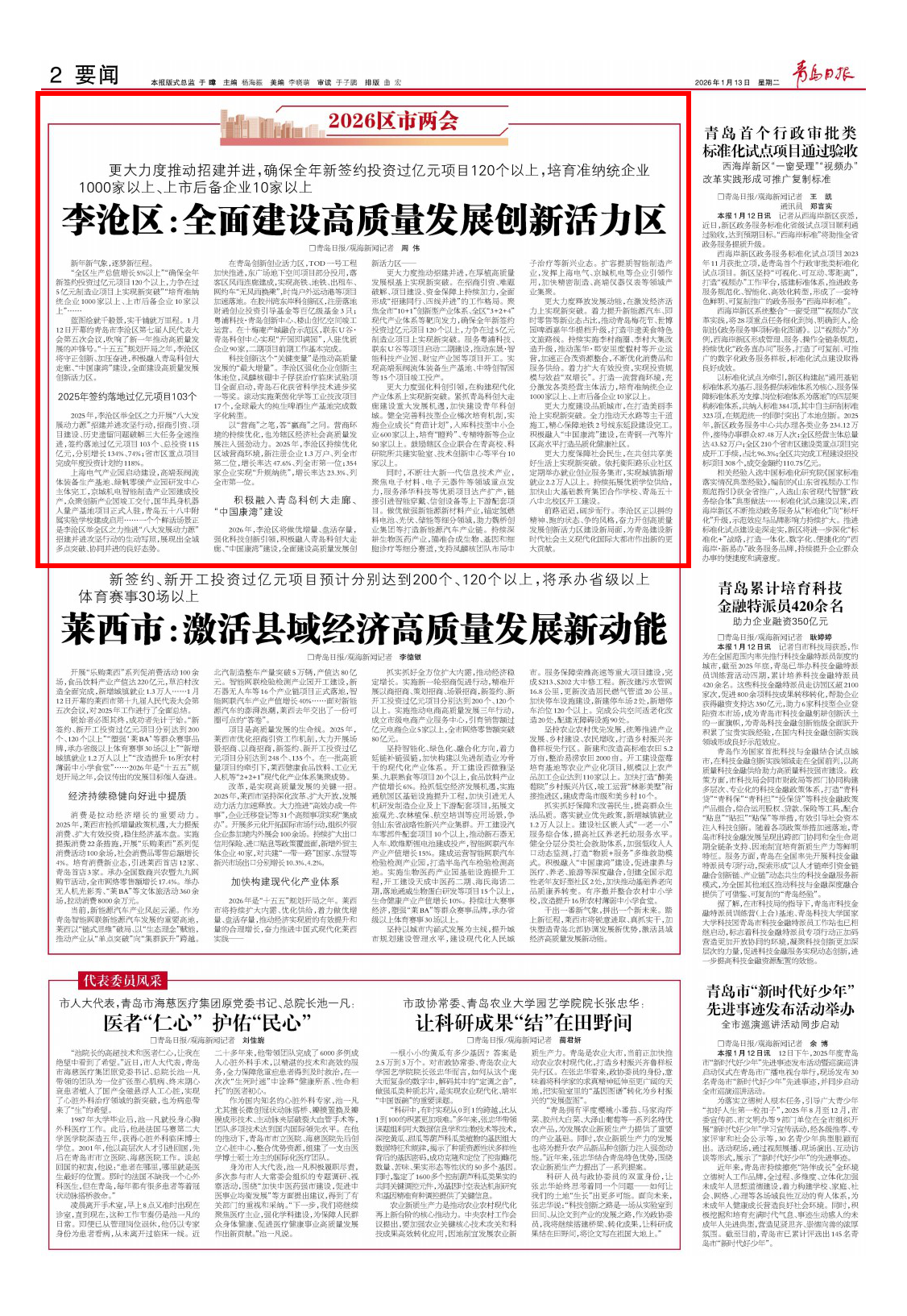 青岛日报2026年1月13日2版