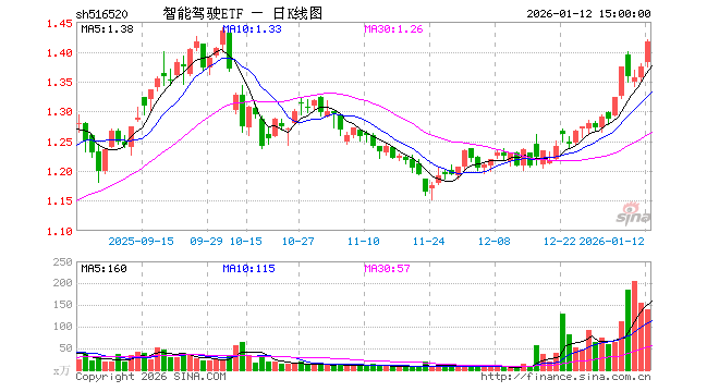 1月12日,智能驾驶ETF(516520)涨2.98%,成交额1.97亿元。当日份额增加5200.00万份,最新份额为8.30亿份,近20个交易日份额增加5.18亿份。最新资产净值计算值为11.73亿元。